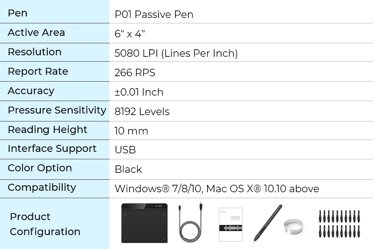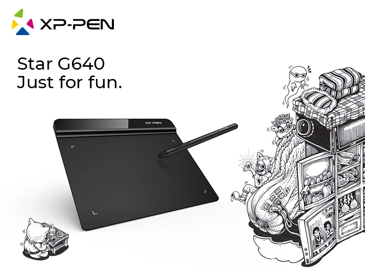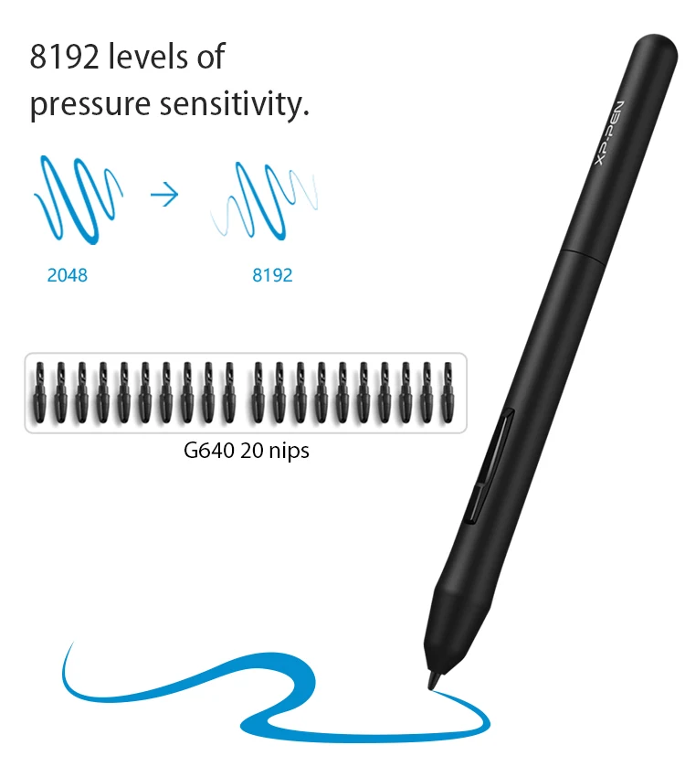 Графический планшет XP-Pen Star G640, рабочая поверхность 6x4 дюйма, чувствительность к нажатию 8192 уровня, 20 сменных наконечников