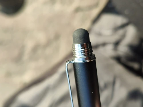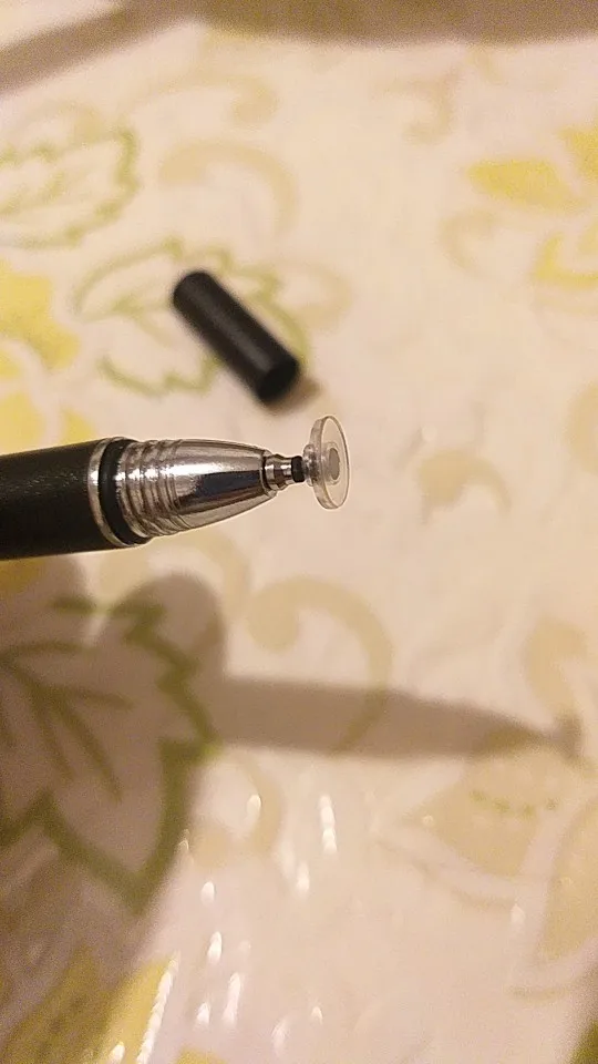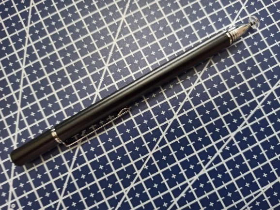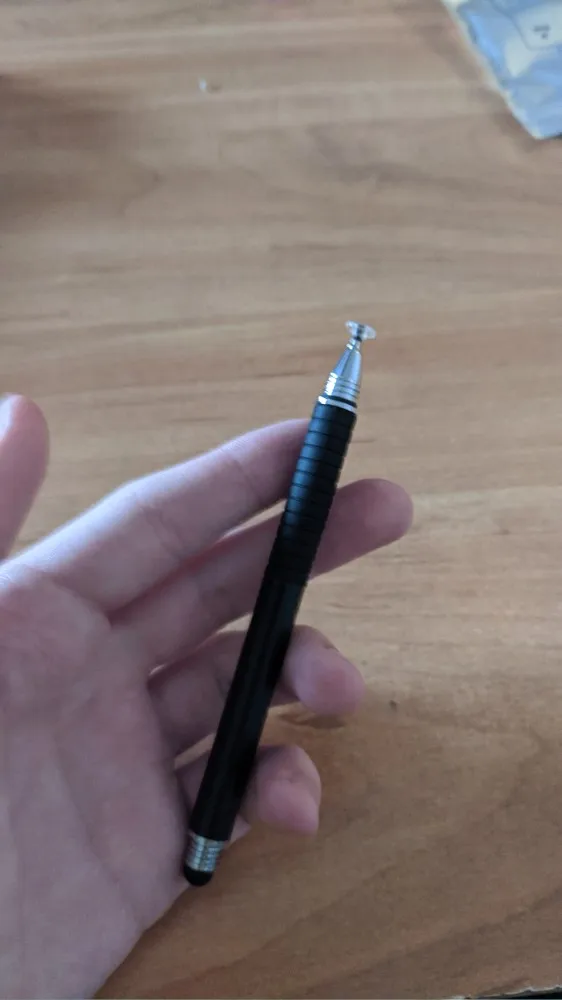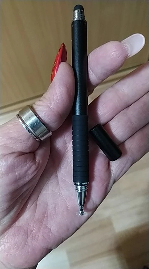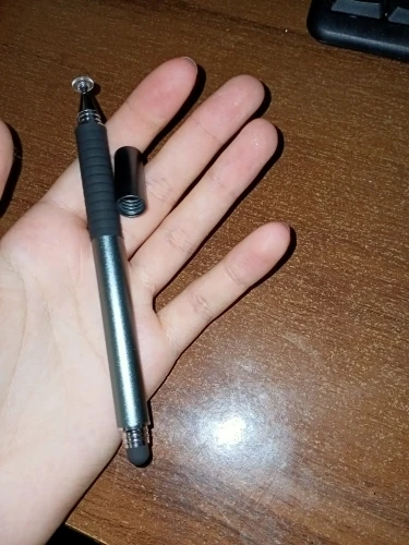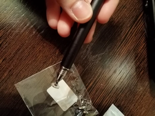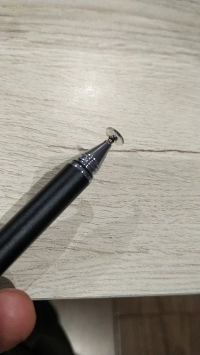 Отличный стилус. Брал исключительно из-за стороны с прозрачной шайбой так как в чертёжных и рисовательных приложениях пальцем и рукой пол экрана закрываешь. Точность, конечно, невысокая, но, допустим, в снапсиде маску редактировать значительно удобней чем пальцем. Если набирать текст, то цокает по экрану. Резиновая сторона обычная.