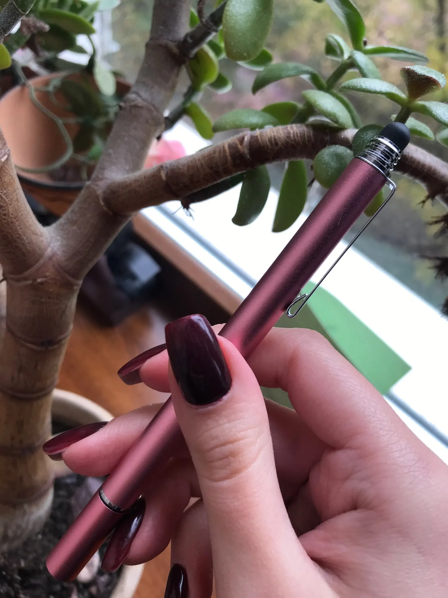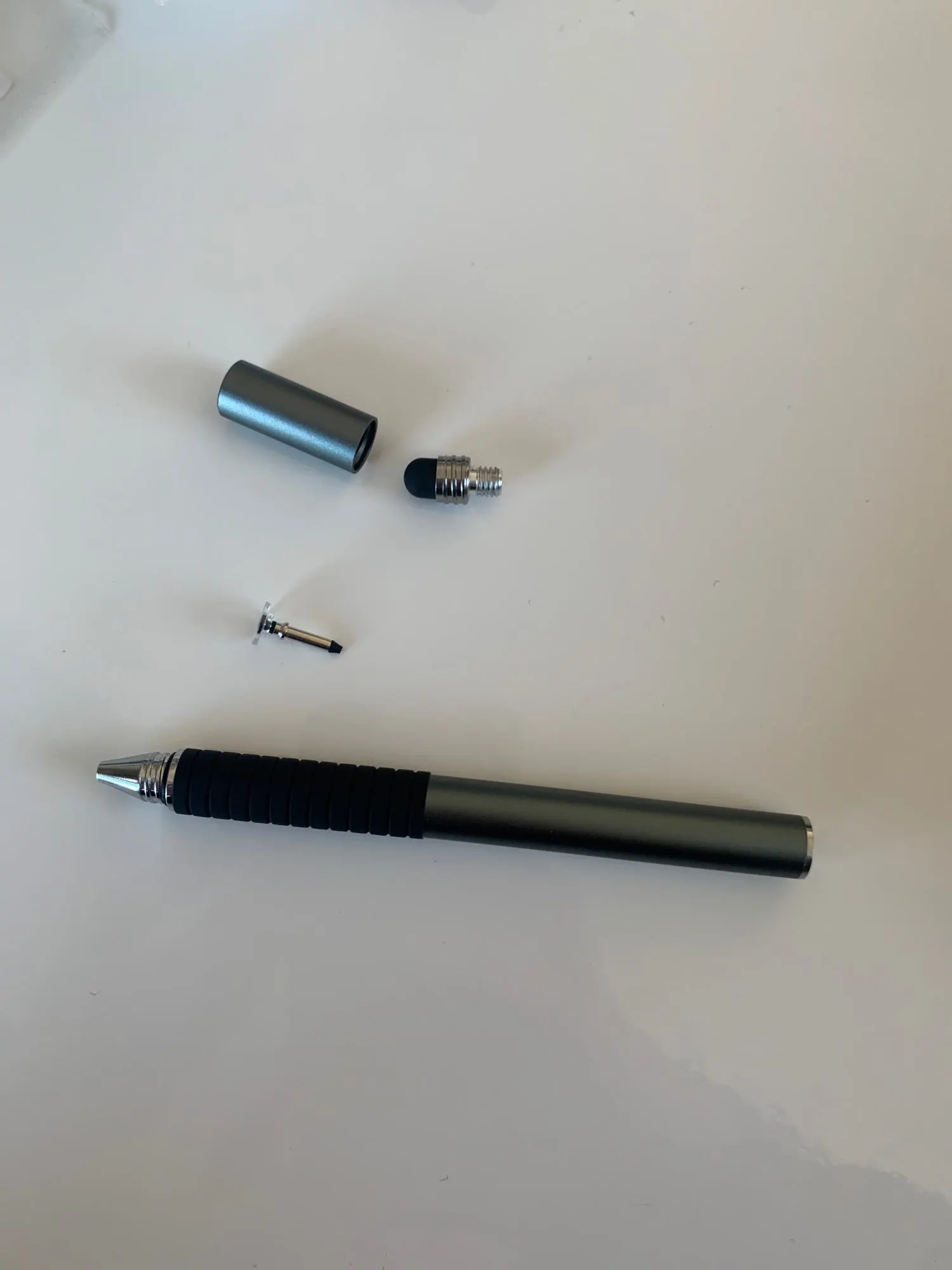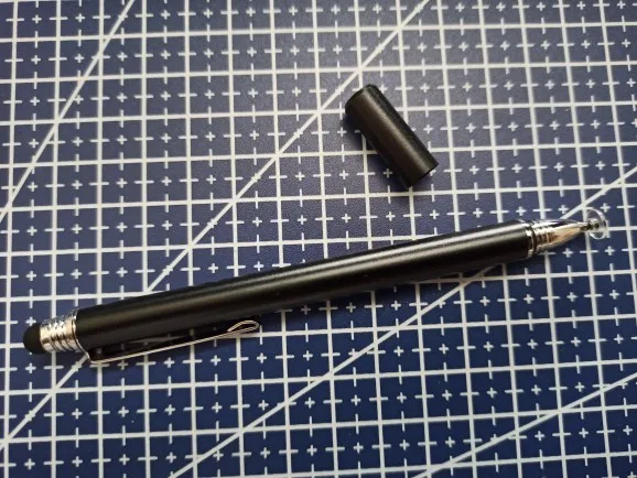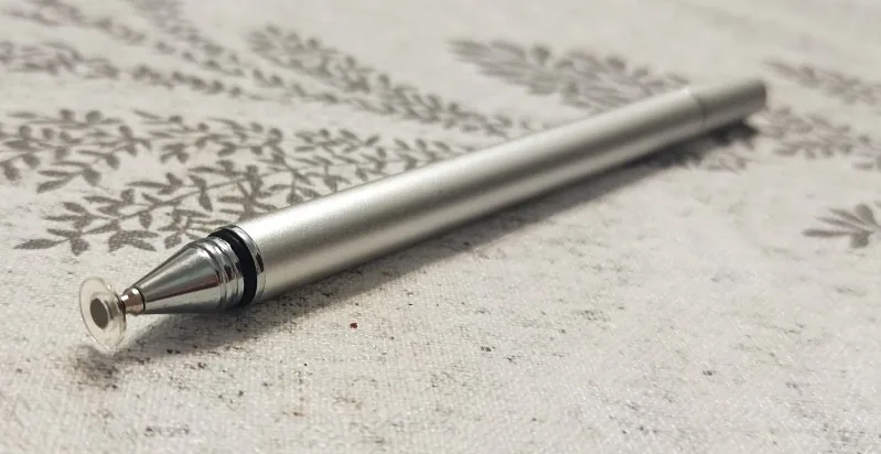 Міцний металевий стилус. Один кінчик товстіший і заокруглений, а дпугим можна цілком і рукописно писати. Тільки йшов місяць.