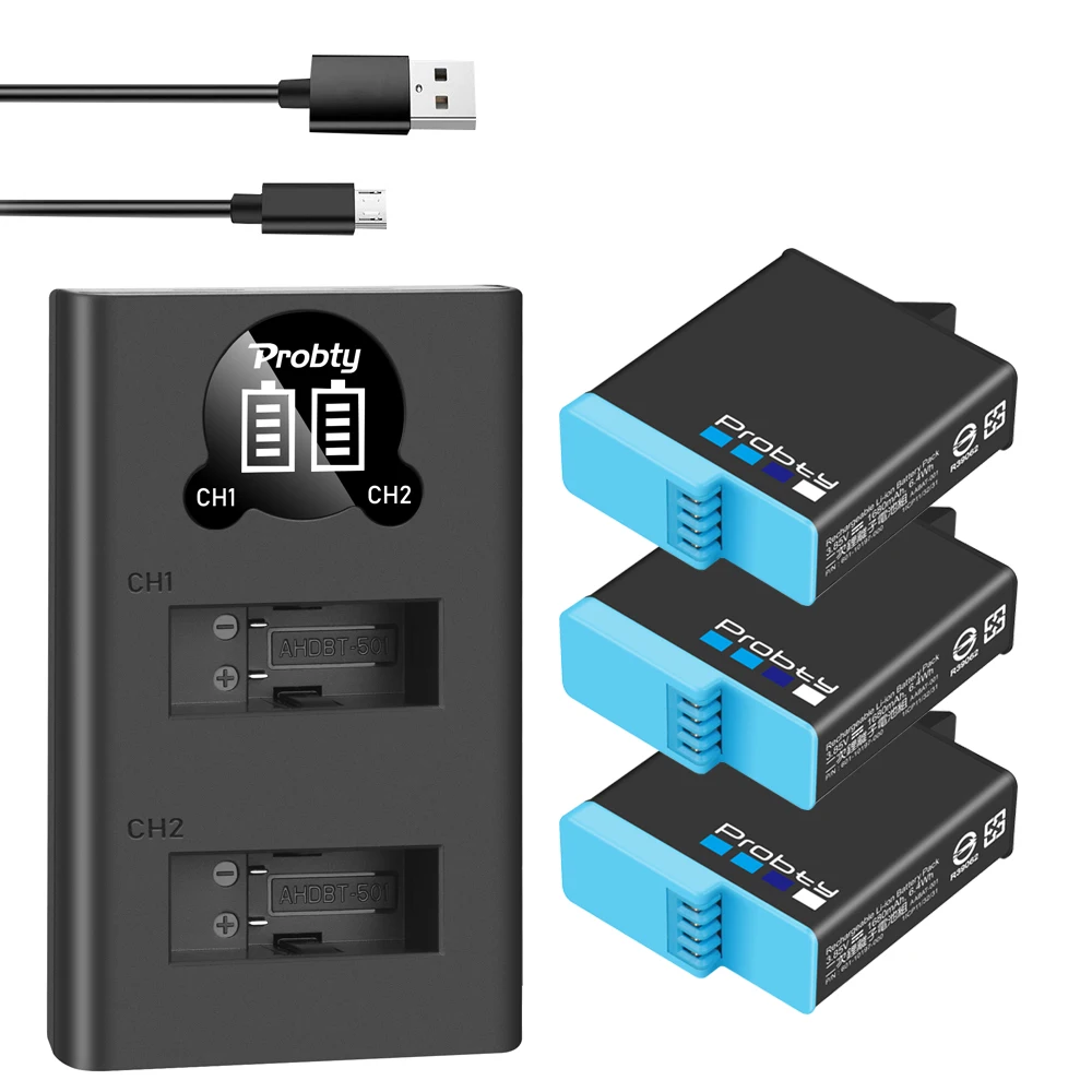 Зарядное устройство Probty для GoPro Hero 8, 7, 6, 5, черная светодиодная Зарядка для GoPro Hero 8, 7, аксессуары для Go Pro, Hero 8, 7