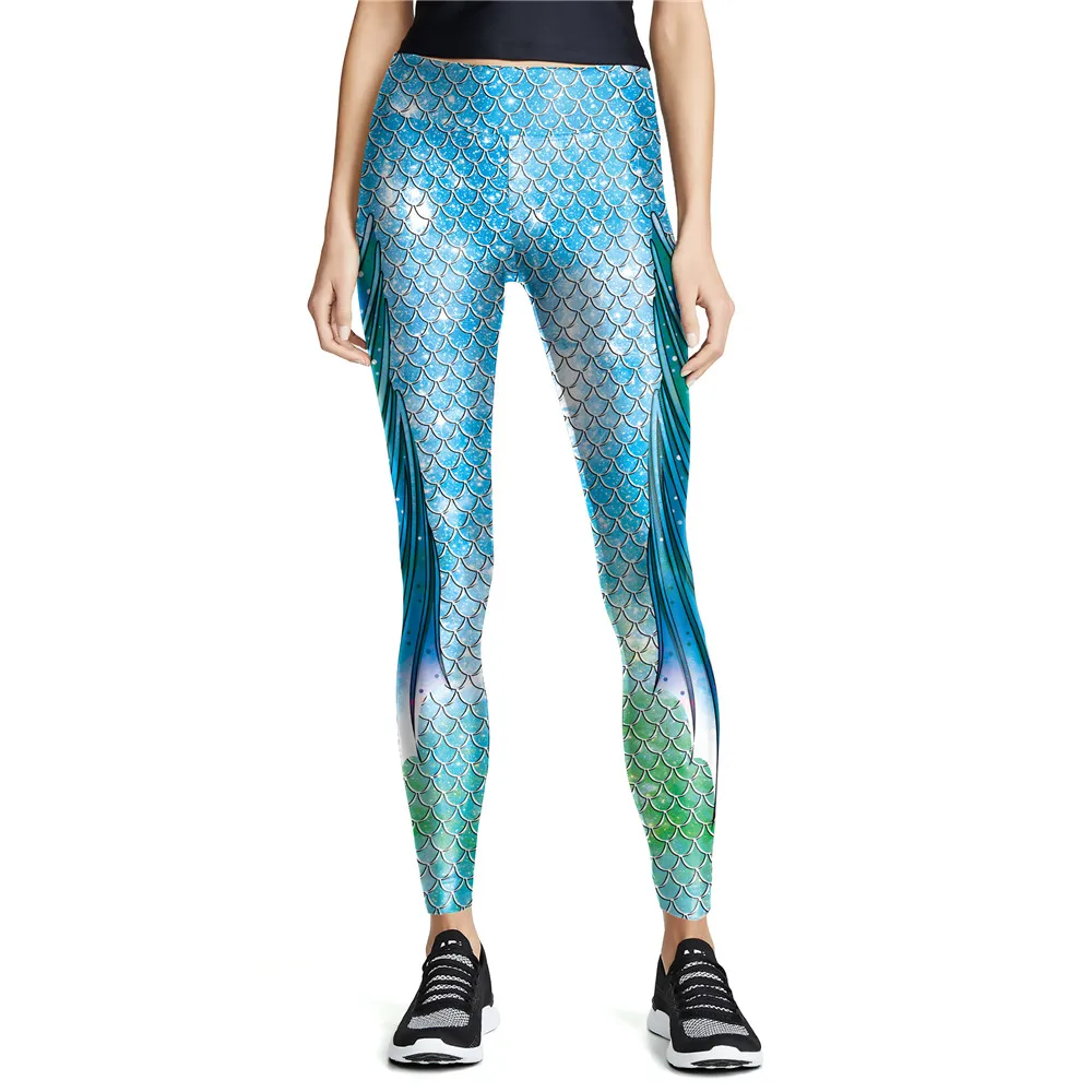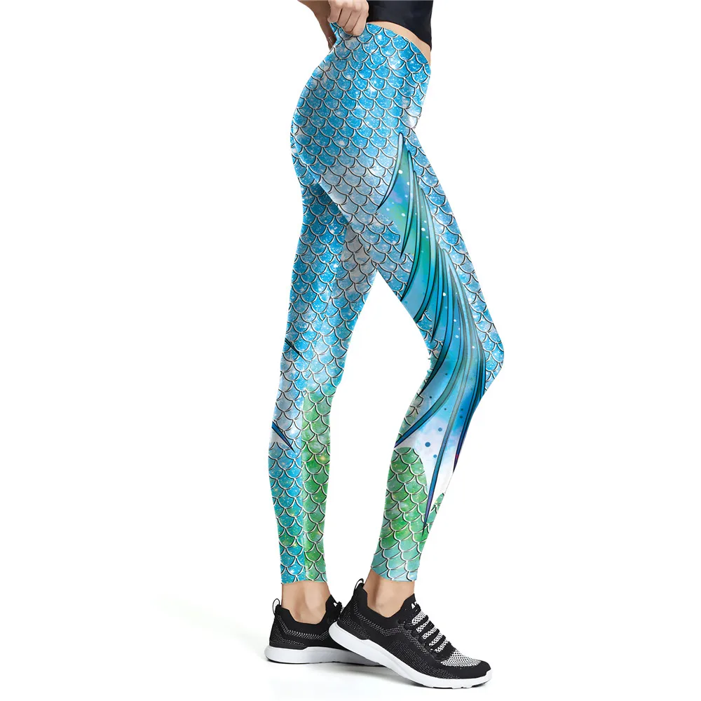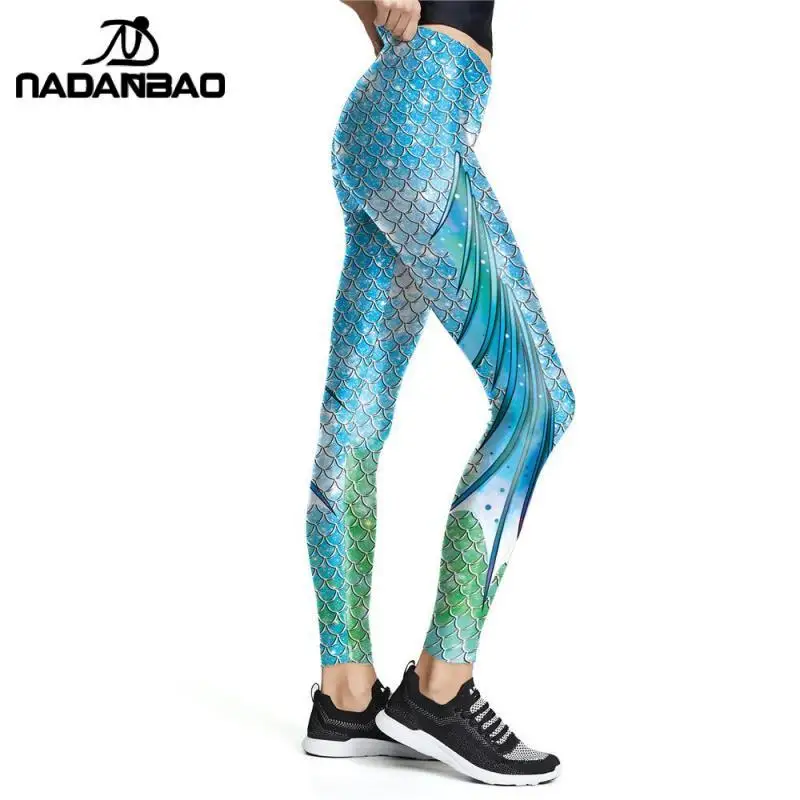 Новинка, синие брюки NADANABO с рисунком в виде рыбьей чешуи, эластичные леггинсы для тренировок с высокой талией