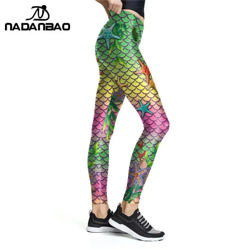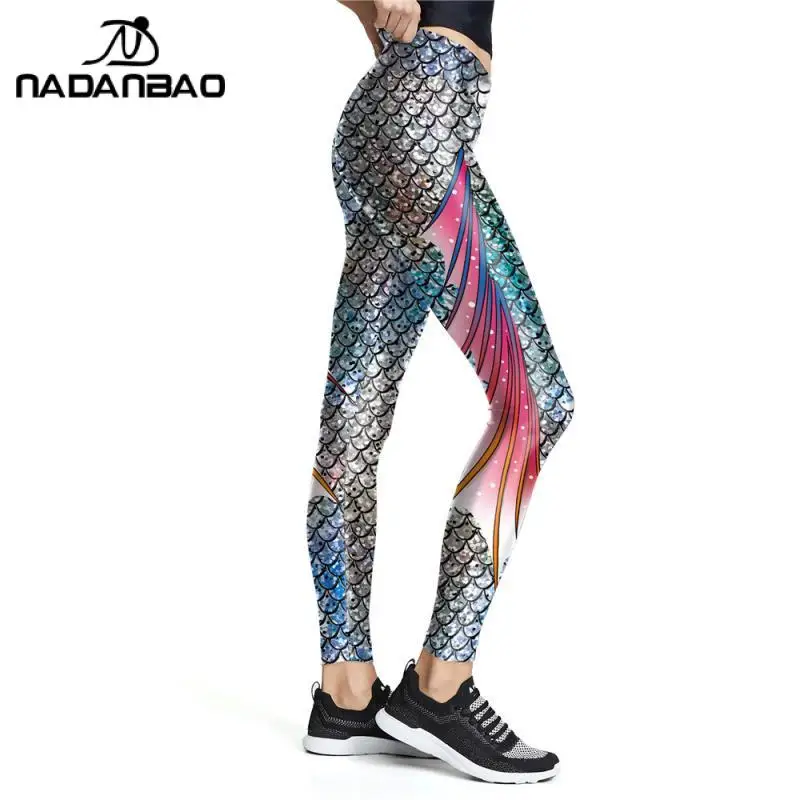 Женские Волшебные леггинсы NADANBAO в виде русалки, леггинсы с 3D-п...