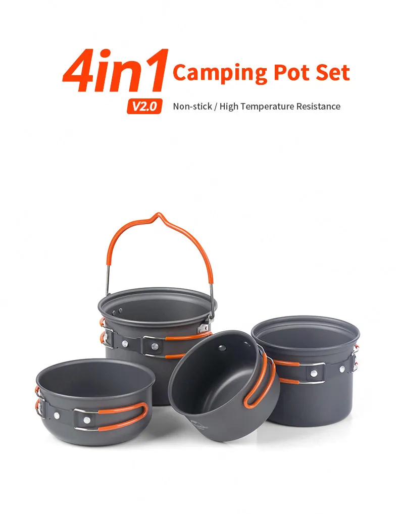 Набор горшков 4 в 1 для кемпинга, пикника, барбекю, из 100 алюминие...