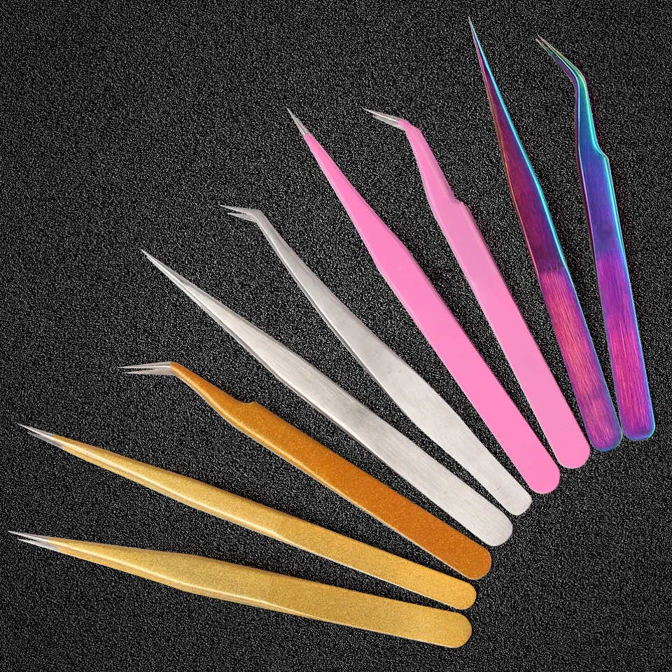 Пинцет для наращивания ресниц из нержавеющей стали 100%, изогнутый, с прямым стальным антистатическим эффектом