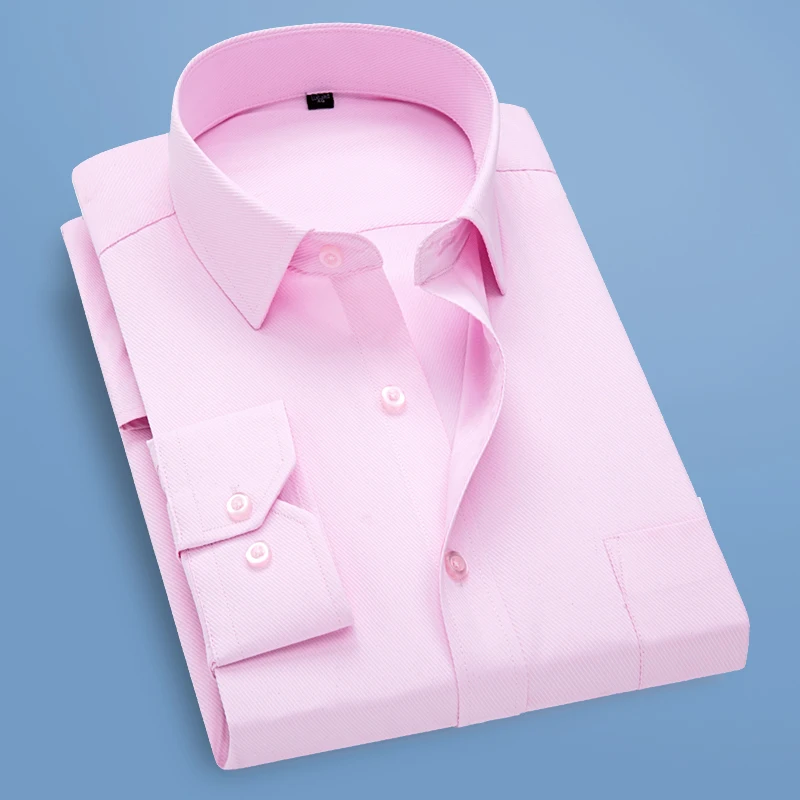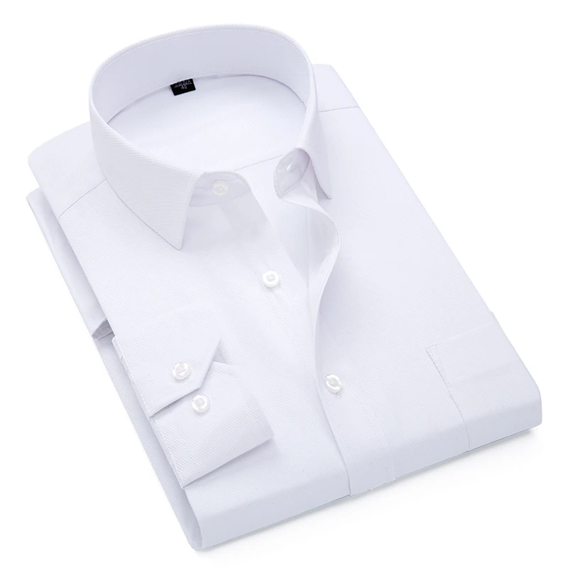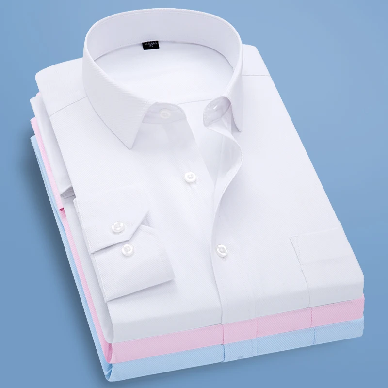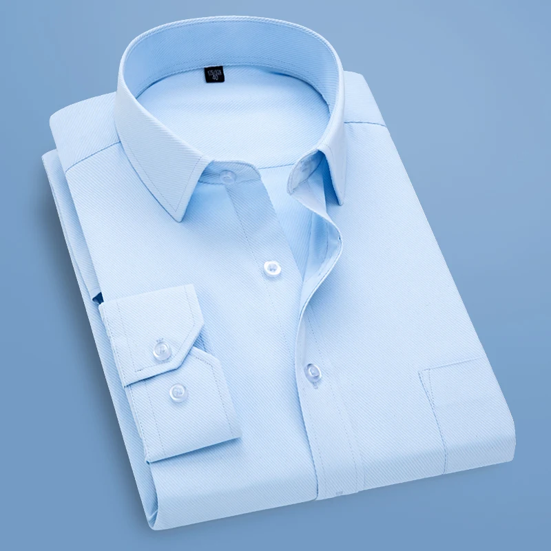 Мужская приталенная рубашка из бамбукового волокна, голубая однотонная Удобная классическая рубашка с длинными рукавами, не требует глажки, Осень-зима 2019