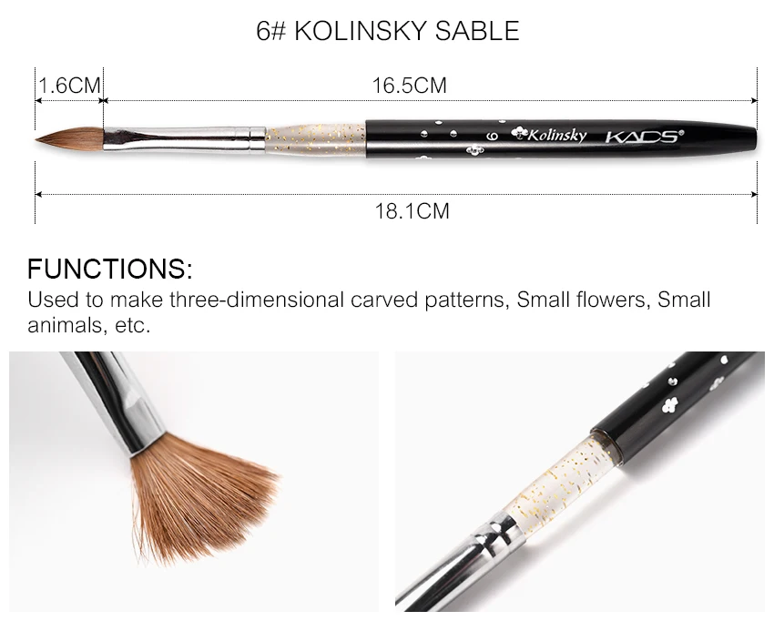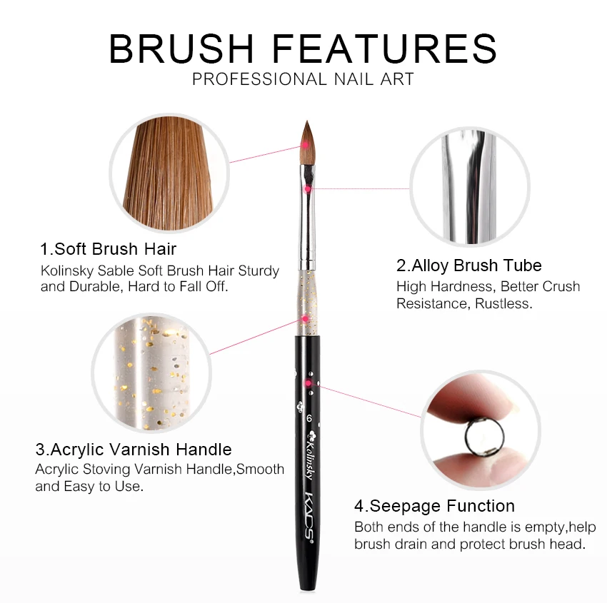 Акриловая кисть KADS Kolinsky Размер 2 #4 #6 #8 #10 # акриловая кисть профессиональная черная акриловая кисть для ногтей