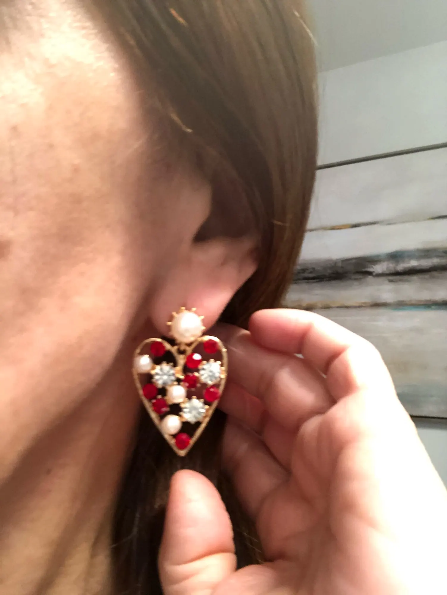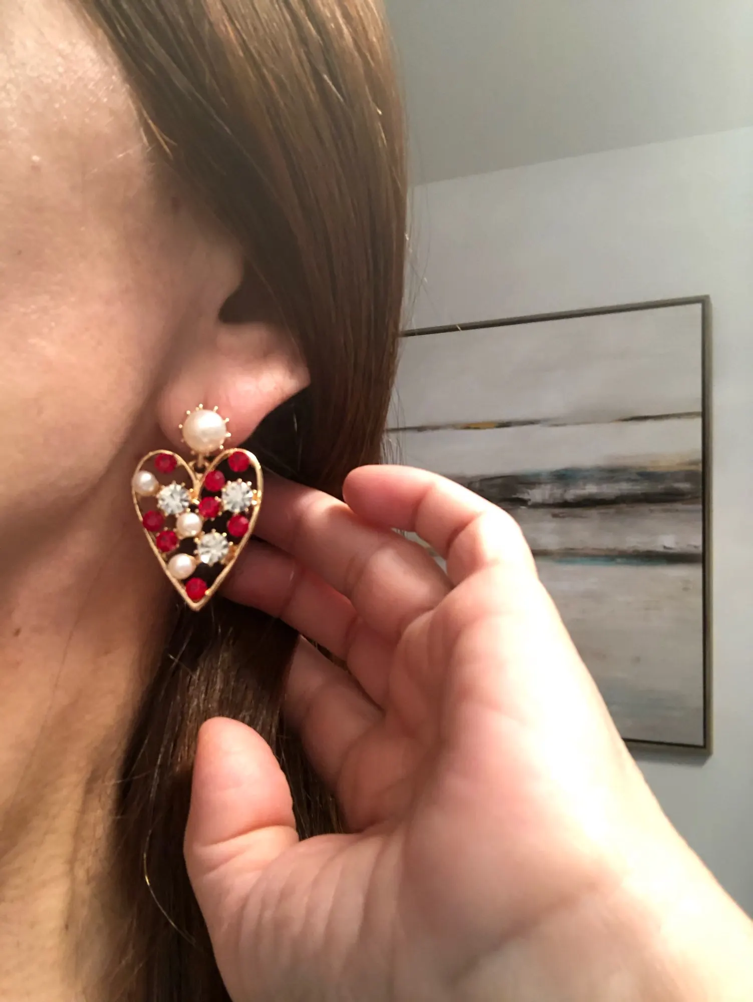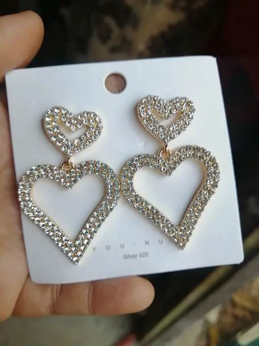 Серьги-подвески с кристаллами, акриловые, в форме сердца