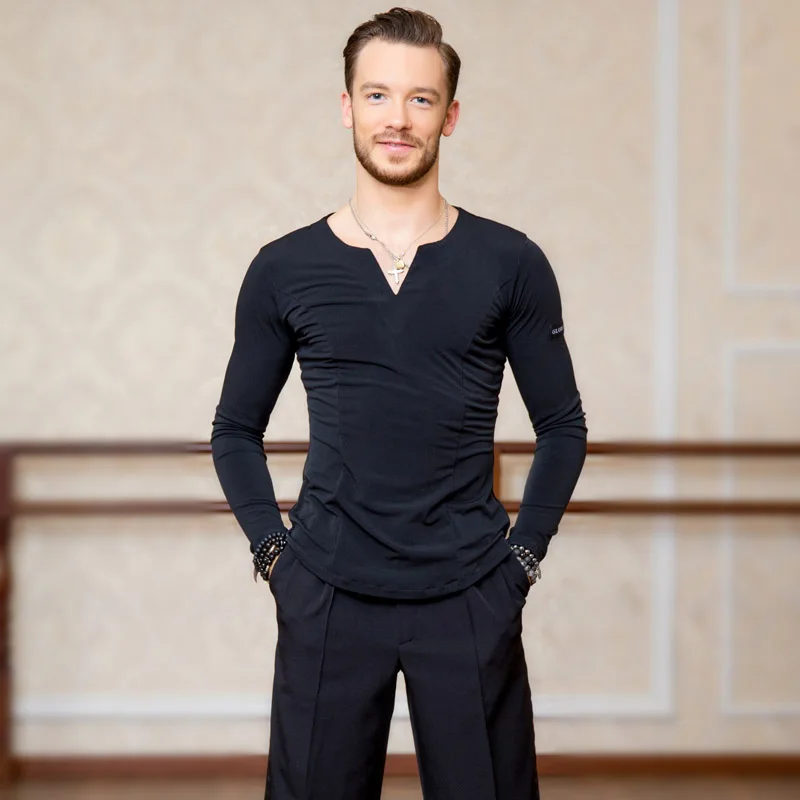 Мужские топы для латиноамериканских танцев, стандартная одежда для бальных танцев, тренировок, рубашка с длинным рукавом и V-образным вырезом для Samba Waltz, танцевальные майки DL5233