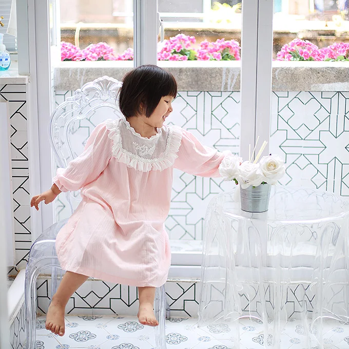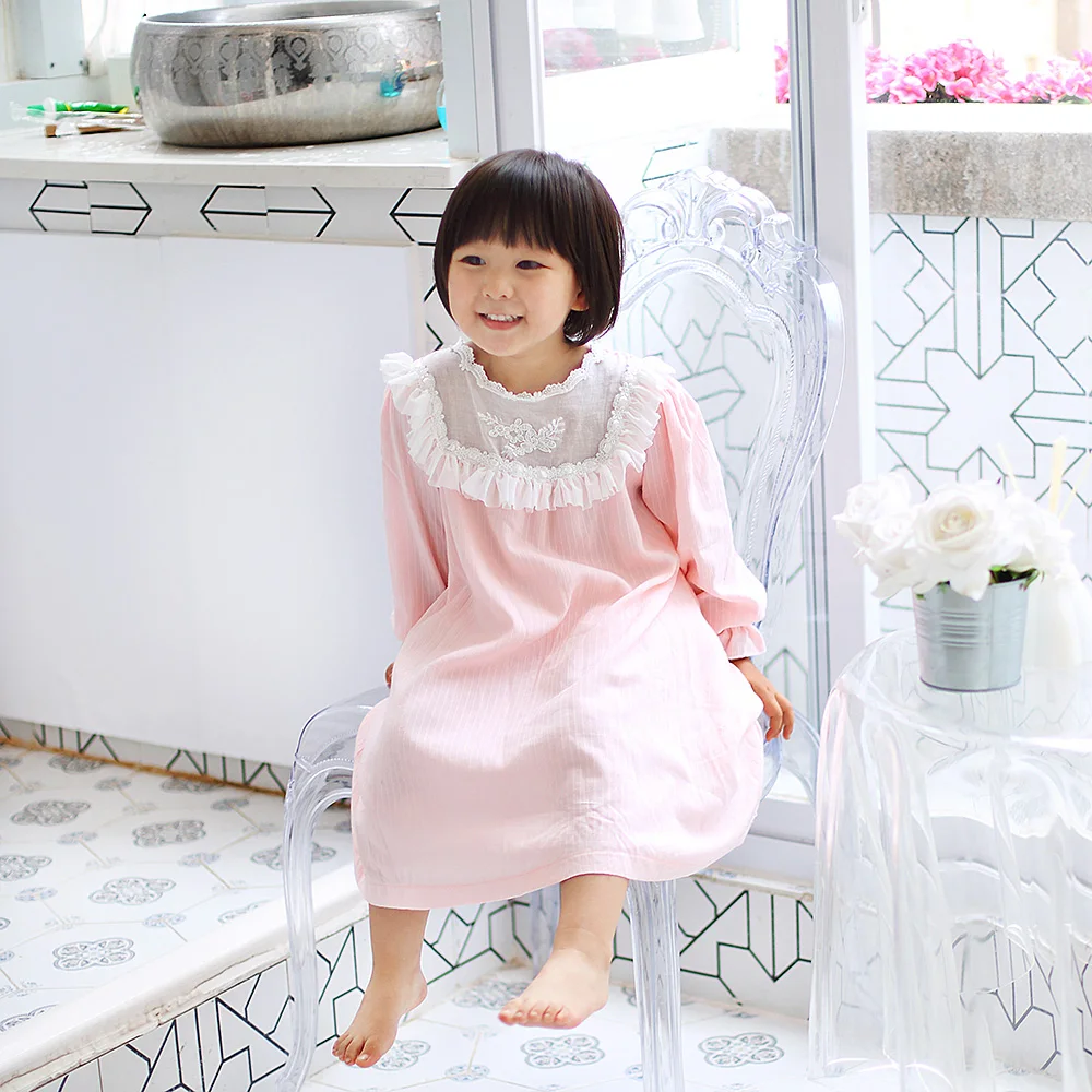 Детские стильные винтажные кружевные ночные рубашки в стиле принцессы