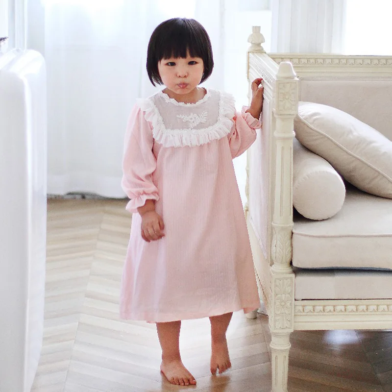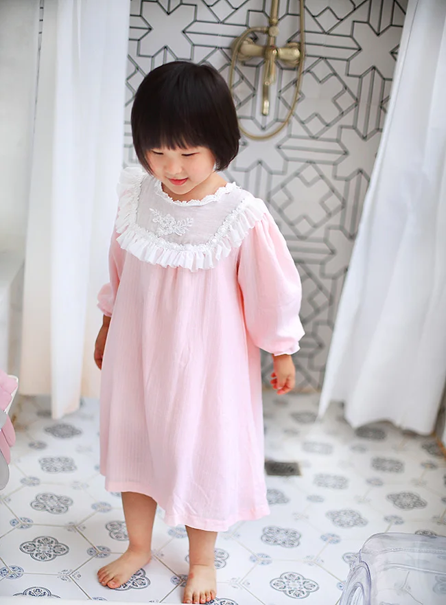 Детское платье лолиты для девочек, розовые ночные рубашки принцессы, винтажные ночные рубашки с вышивкой, Детская Ночная рубашка в викторианском стиле, одежда для сна