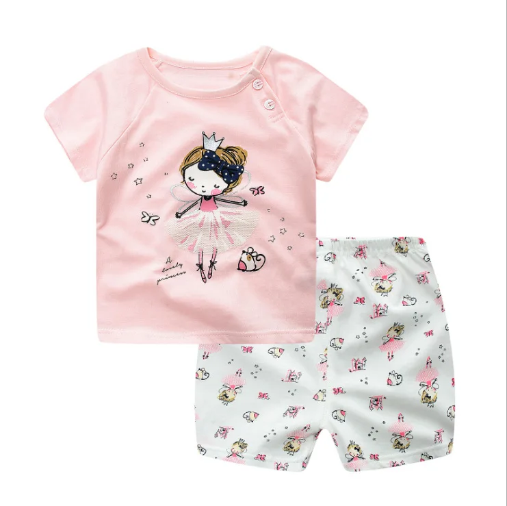 Летние комплекты детской одежды, футболка с коротким рукавом и штаны с мультяшным принтом для маленьких девочек и мальчиков, детская одежда из 2 предметов
