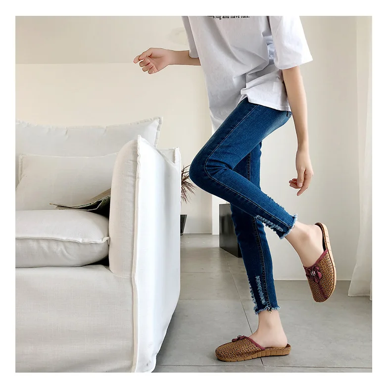 Летние льняные домашние тапочки; женская обувь на плоской подошве; парные льняные пляжные сандалии; Повседневная Женская и мужская обувь