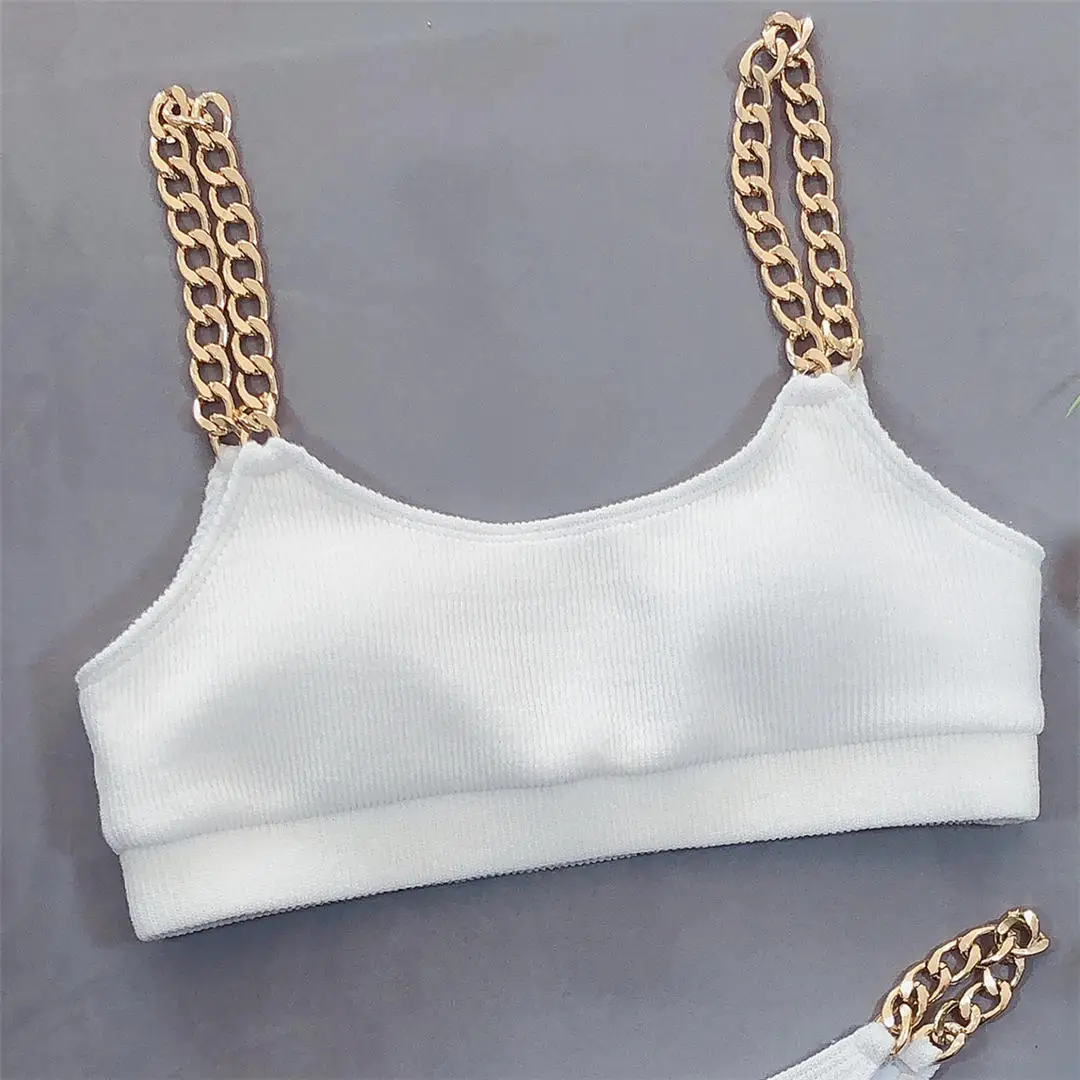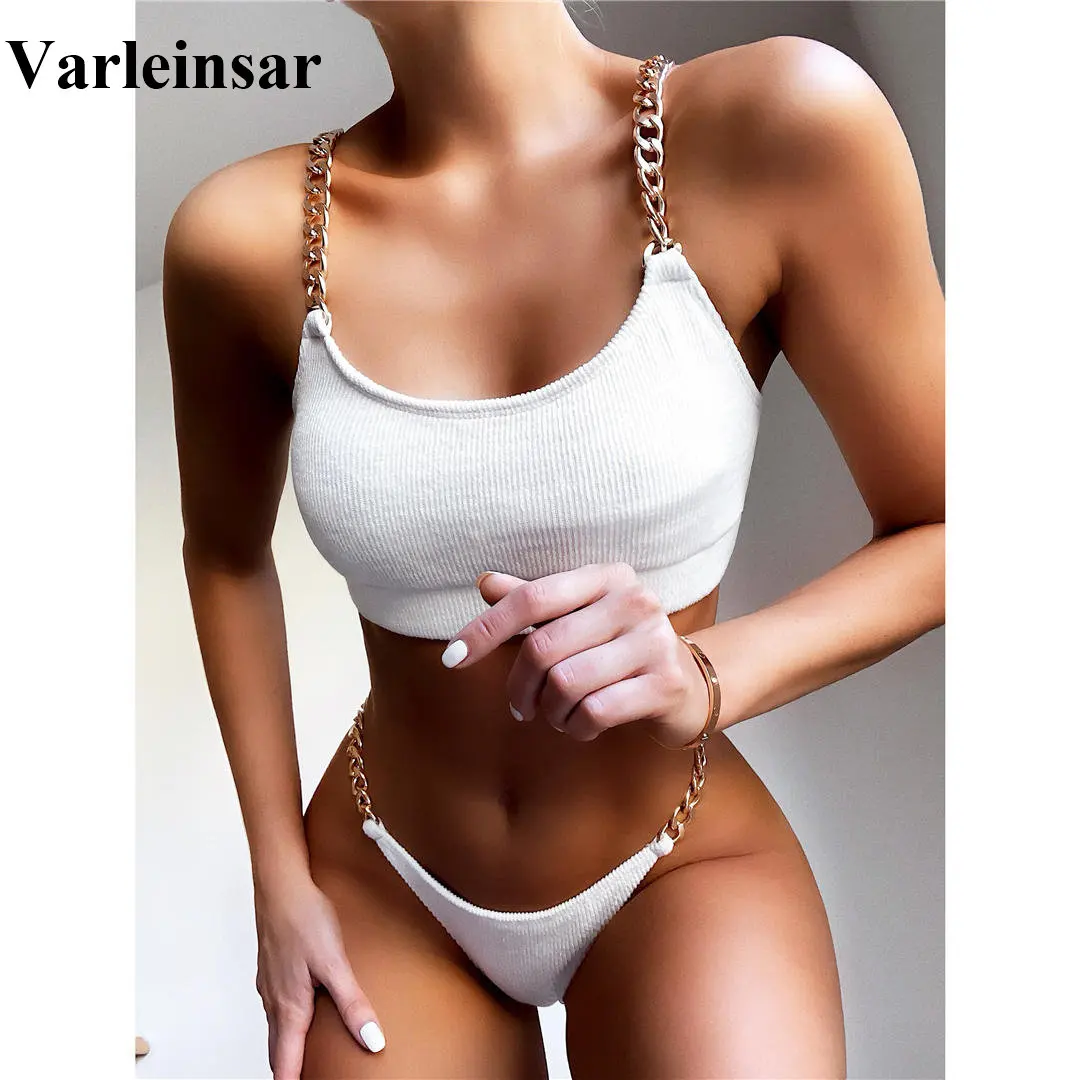 Женский купальник в рубчик, комплект бикини из двух частей с металлической цепочкой, купальный костюм с высокими штанинами, V1934, 2021