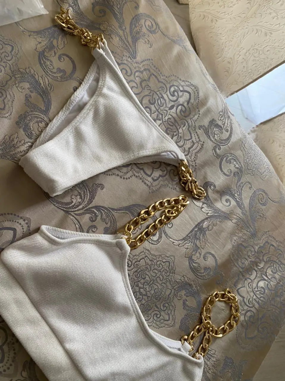Купальник отличный. Швы ровные, нитки не торчат. Цепочки ровные, без сколов.