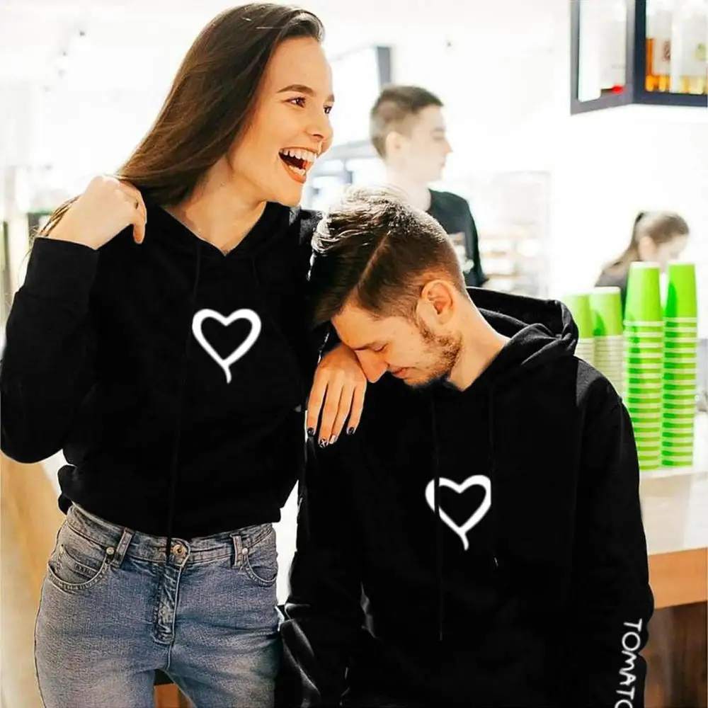 Дневные толстовки на День святого Валентина для пар, осенне-Весенняя толстовка с капюшоном и длинным рукавом в стиле Харадзюку, Повседневный пуловер, женские топы