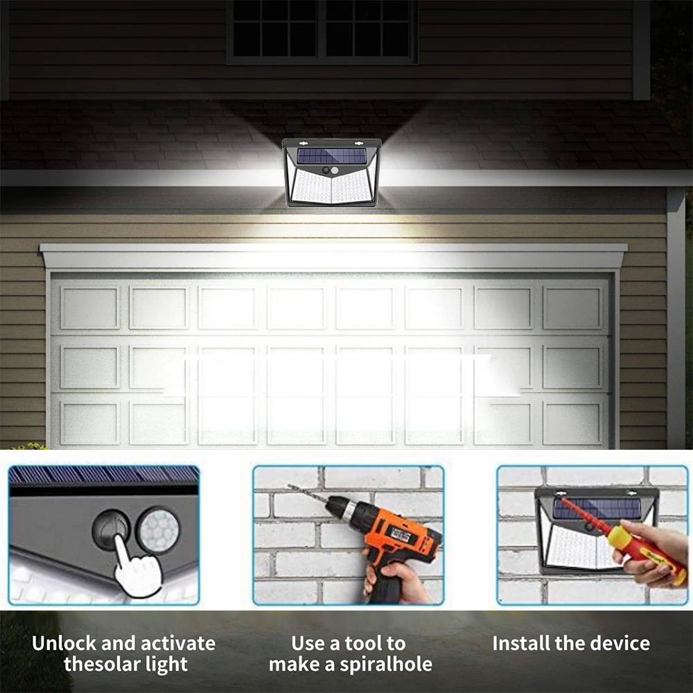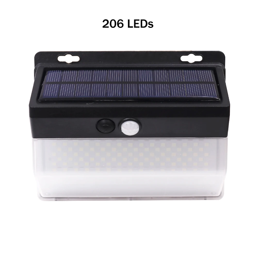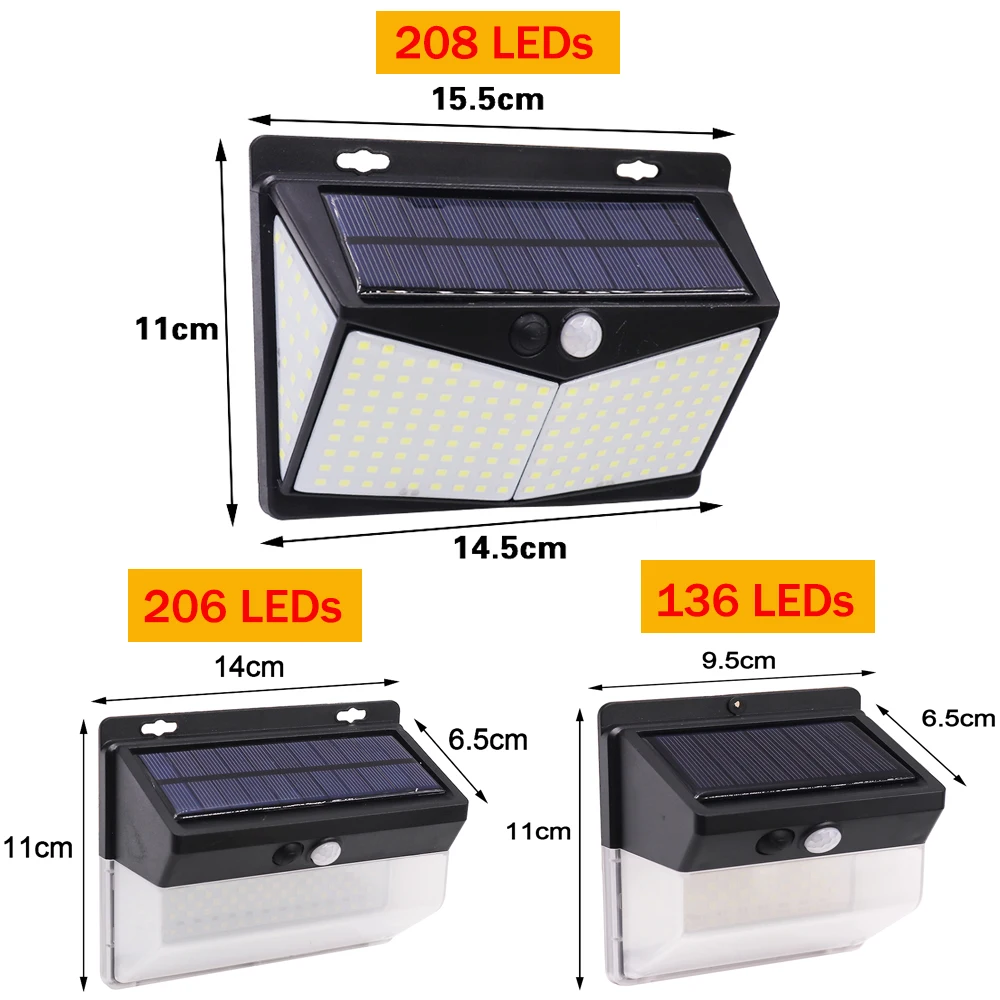3. Датчик света 208led использует новейшую версию солнечных панелей, чтобы выдерживать солнечную энергию в течение дня. Встроенная перезаряжаемая батарея 18650 хранит источник питания для ночных светодиодных ламп. Полностью использовать солнечную энергию, счет за электричество 0! Отсутствие углекислого газа!