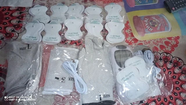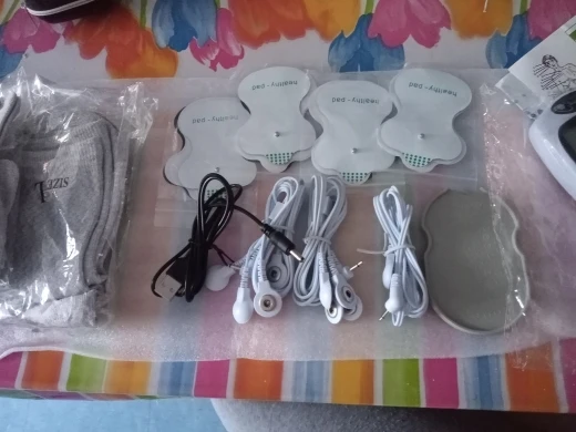 Товар прибыл в течение 1.5 месяцев. Продавец какой-то непонятный. Инструкции на русском нет, просил продавца прислать на русском инструкции. В результате на почту скинул инструкцию на совершенно другой аппарат. При заказе просил продавца выслать рукавицы и носочки больших размеров. Как итог продавец сначала отправил заказ, а потом начал спрашивать устроит ли меня отправленный размер. К счастью все подошло. Сам аппарат имеет 8 режимов и в каждом режиме 15 уровней силы тока. Как по мне выше 7 уровня выдержать трудно. Питание от 3 батареек ААА или от сети ( есть в комплекте питающий кабель). Электроды после применения промываю спиртом, клеятся без проблем уже 2 недели. В комплекте идёт пластмассовая штучка для хранения электродов. В общем товаром доволен, а общением с продавцом не совсем.