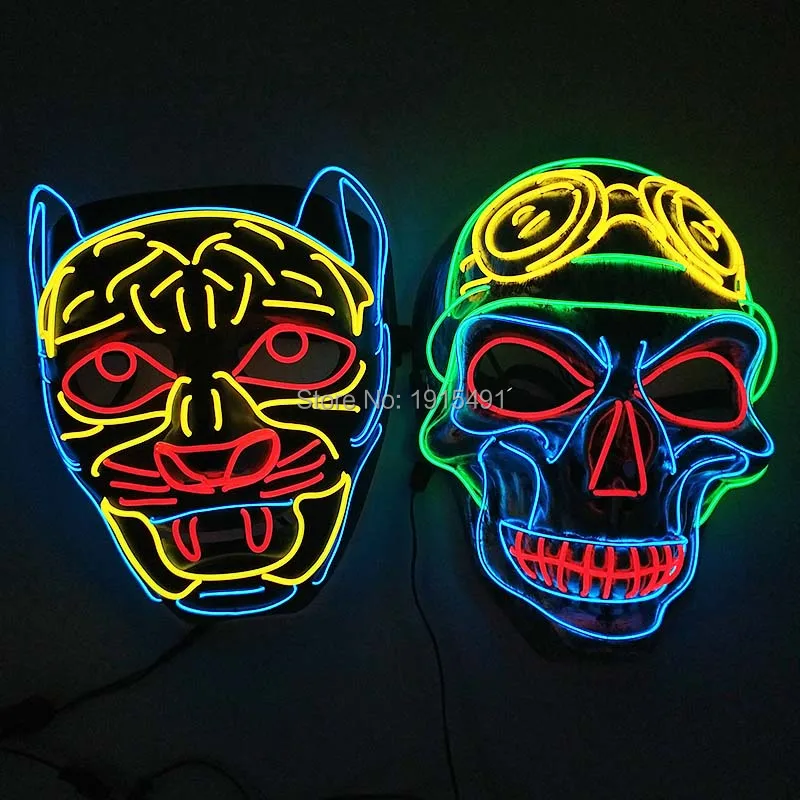 Светящаяся неоновая светодиодная маска EL для музыки, концерта, прямой трансляции, Вечеринки На Хэллоуин, маска клоуна, модель маски, украшение сделай сам