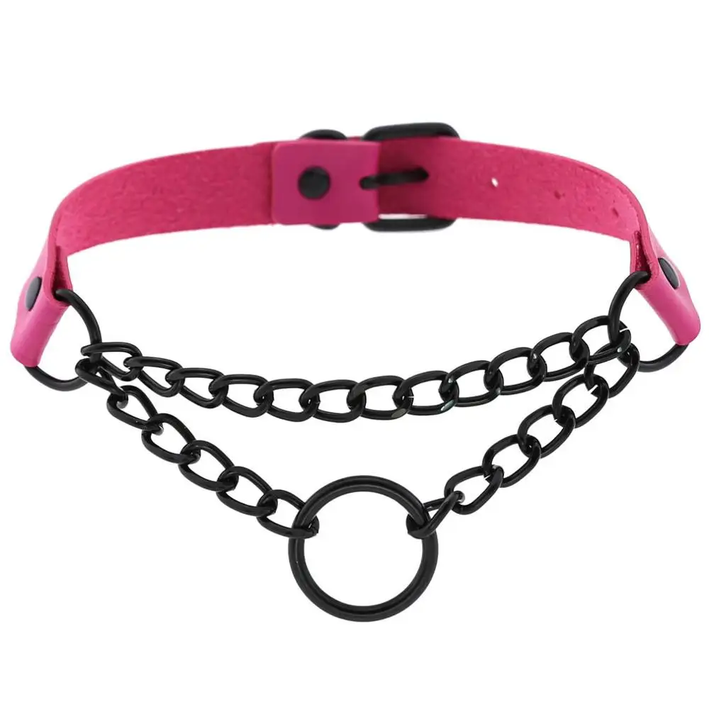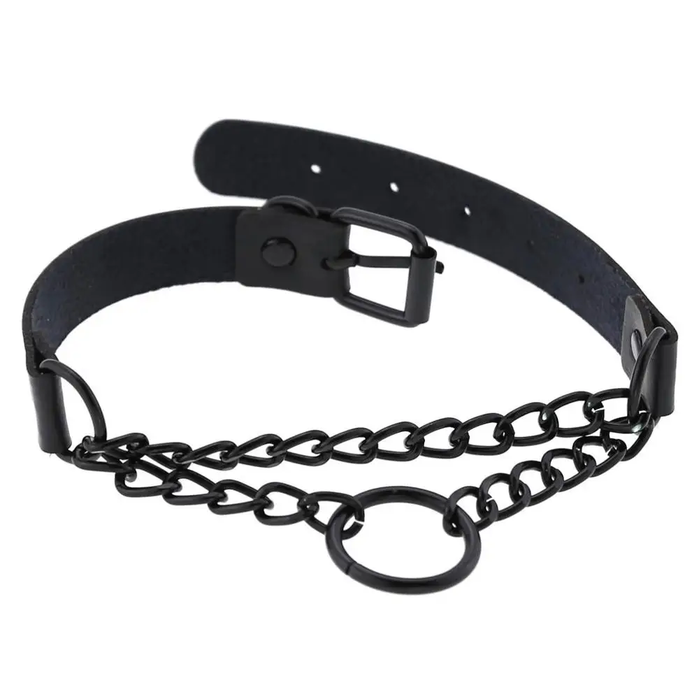 Женский кожаный ошейник-чокер, черный кожаный ошейник с цепочкой в ...