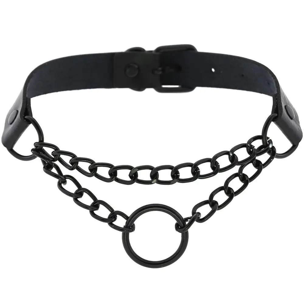 Ожерелье женское из искусственной кожи, черное в готическом стиле, ...