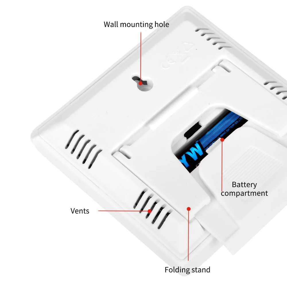 Особенности: Точное измерение в реальном времениНаш цифровой термометр имеет большие вентиляционные отверстия с обеих сторон для обеспечения высоких точных показаний с быстрым и реальным откликом. С широким диапазоном температур от-9,9 °C-50 °C и широкий диапазон влажности от 10% RH - 99% RH. Комфортные индикаторЕсть два мультяшных значка, показывающие текущие погодные условия в режиме реального времени. Улыбающееся лицо символизирует «комфорт» (Относительная влажность: 40%-70%), а плачевое лицо означает «неприятный» (Относительная влажность: <40% или> 70%). БольшойЖК-дисплей Дисплей Этот термометр влажности интегрирует ЖК-дисплей с большим четким индикатором цифр, отображает температуру в помещении и влажность одновременно, очень легко читается. Гибкий, чтобы разместитьОн имеет складывающуюся подставку 45 ° C для удобного размещения на рабочем столе. Кроме того, на спине есть подвесное отверстие, которое позволяет также повесить его на стену.Прост в использованииТермогигрометр имеет простой дизайн с 3 кнопками, что делает его более элегантным и изящным. Есть кнопка переключения для выбора единицы измерения °C / °F, кнопка Mode и кнопка ADJ для установки. Широкое применениеЭтот цифровой термометр делает вашу жизнь более легкой и идеально подходит для многих мест, таких как крытый, офис, дом, детская комната, ванная комната, Цветочная комната и т. д. Технические характеристики:Тип: электронный цифровой термометрЦвет: белыйМатериал: АБС-пластикКоличество: 1 шт.Диапазон измерения температуры:-9,9 °C-50 °CДиапазон измерения влажности: 10% ~ 99% (RH)Точность измерения температуры: 1 °CТочность измерения влажности: 5% относительной влажностиПогрешность измерения температуры: ± 1 °CПогрешность измерения влажности: ± 5% относительной влажностиРазрешение температуры: 0,1 °CМощность питания: 1,5 V элемент питания AAА (в комплект не входит)Размер: 82*78*21 мм/3,22*3,07 * 0.83inВес нетто: 50 г/1,76 унций Упаковка pureglas1 * электронный цифровой термометр