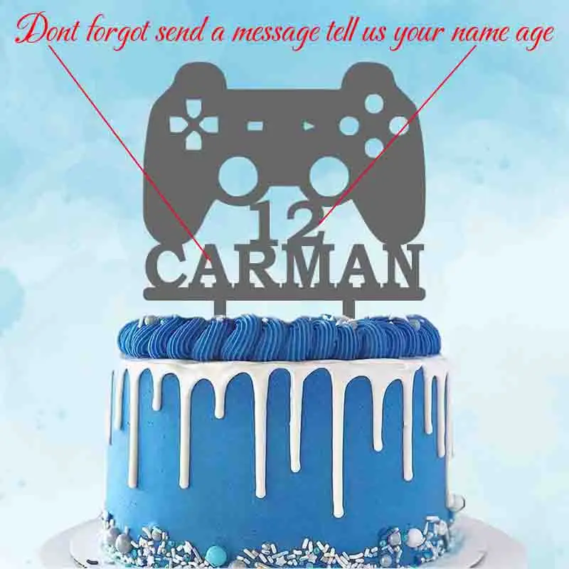 Персонализированный игровой Топпер для торта, название под заказ, игра для возраста, геймпад для торта, Топпер для игровых фанатов, украшение для торта на день рождения