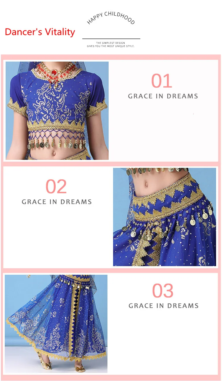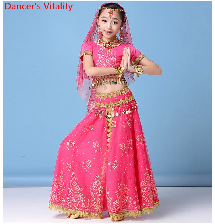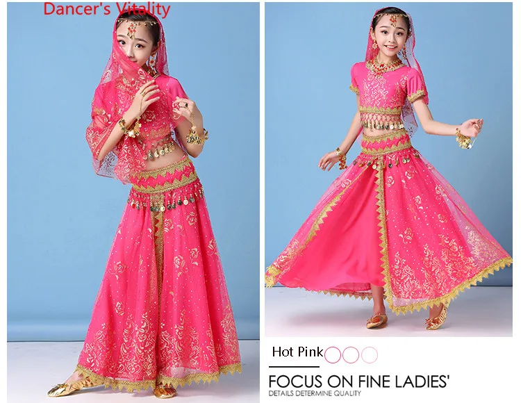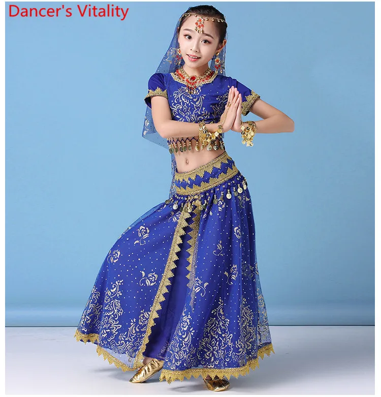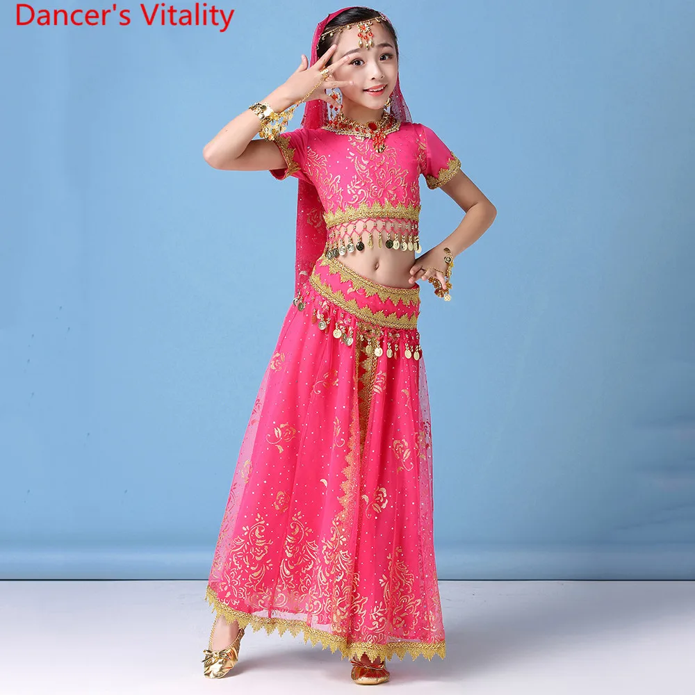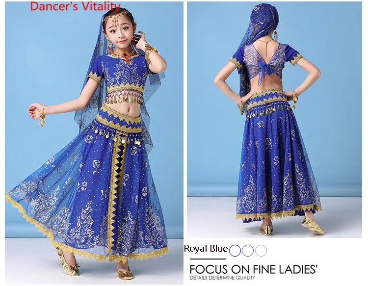 Индийская Одежда для танцев одежда для тренировок новый элегантный шифоновый топ для девочек, юбка с большим подолом комплект с ремнем для монет, сари, танцевальные костюмы для танца живота