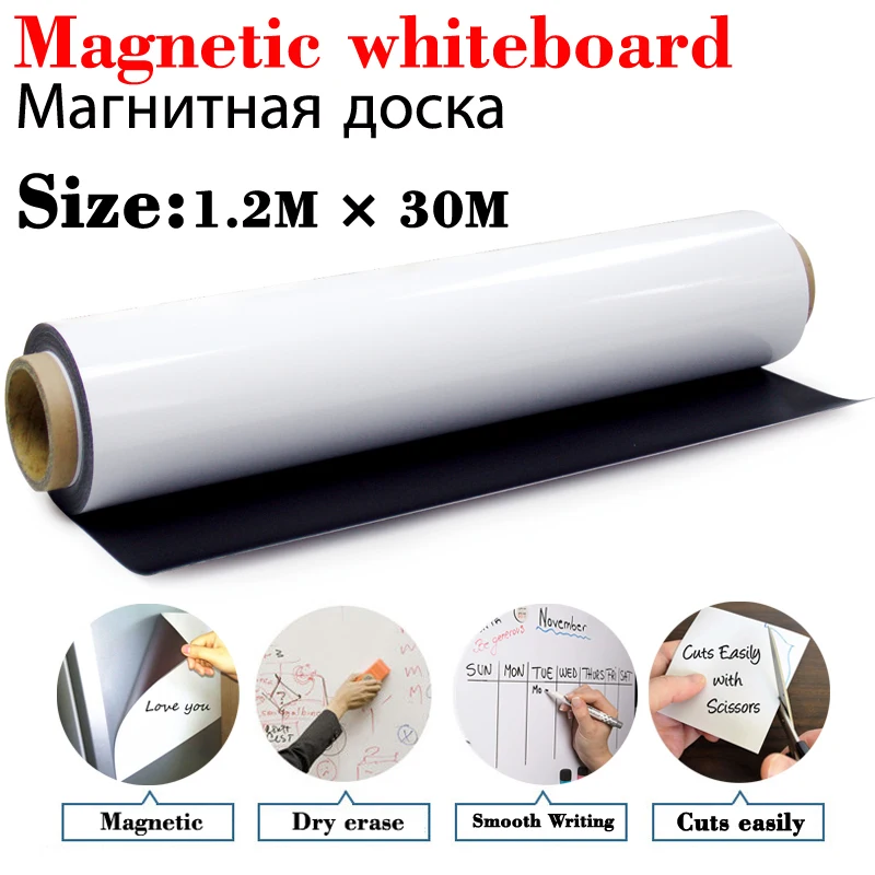 1,2 м * 30 м Магнитная белая доска школа обучение офис кухня магнит сухой стирать доска белые доски гибкие Фотообои