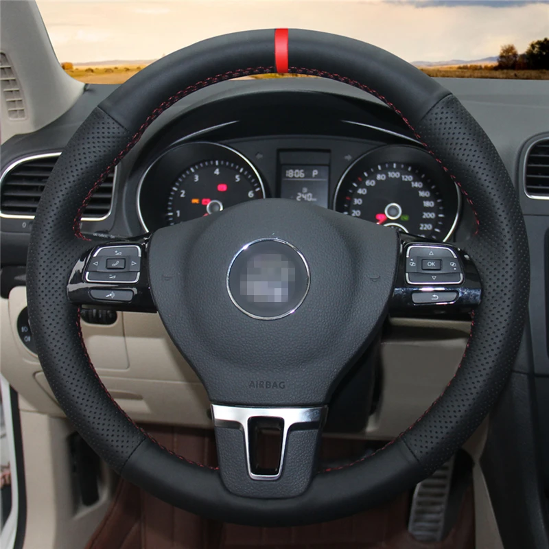 Черная искусственная кожа PU чехол рулевого колеса автомобиля для Volkswagen VW Gol Tiguan Passat B7 Passat CC Touran Jetta Mk6