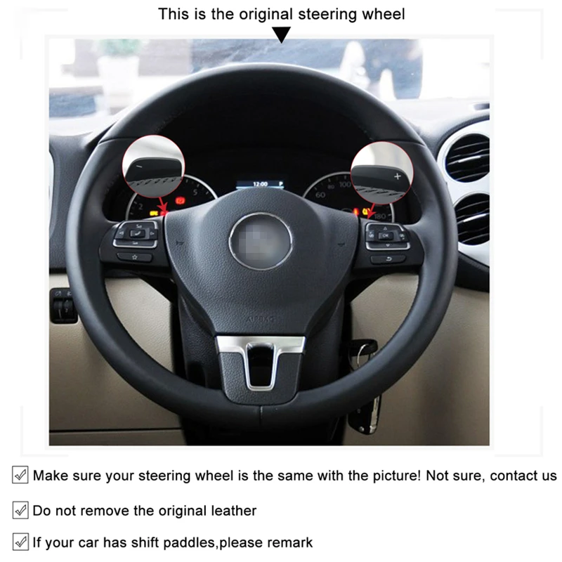 1. Перед размещением заказа, пожалуйста, внимательно сравните, если ваше рулевое колесо полностью совпадает с нашей картинкой. Если они одинаковые, пожалуйста, не стесняйтесь размещать заказ. Если есть какие-либо различия, чехол будет неподходящим!