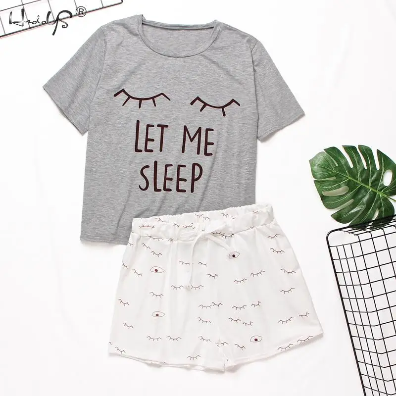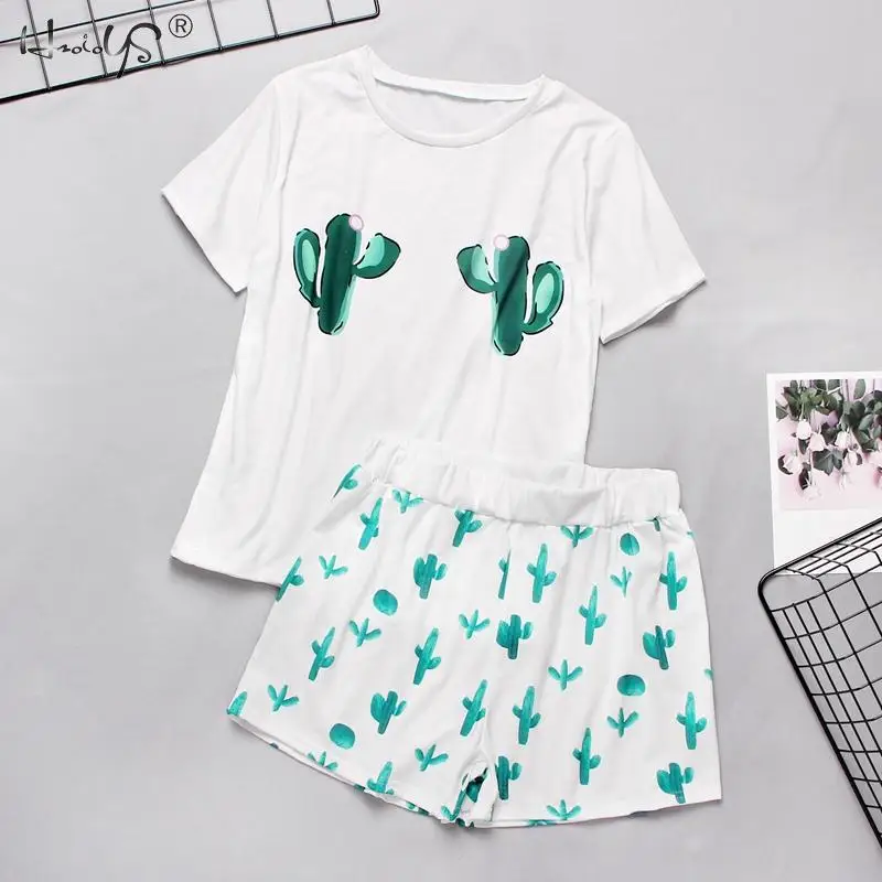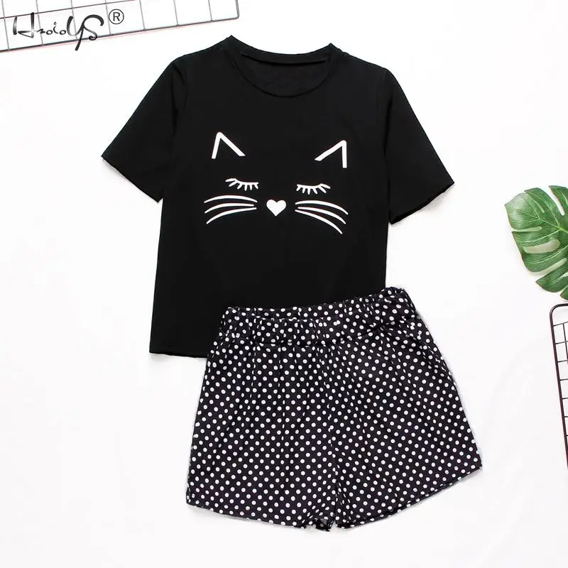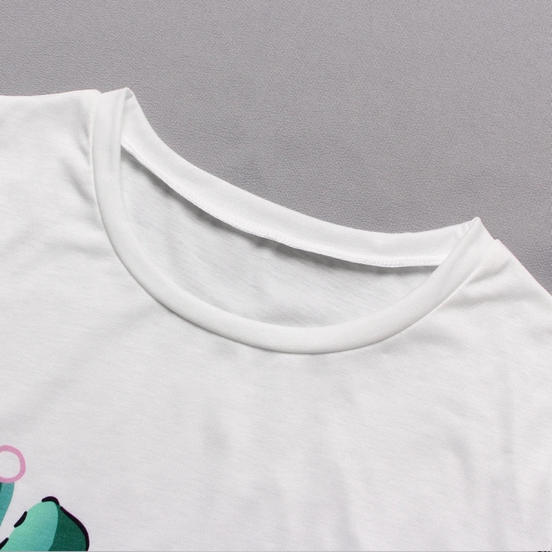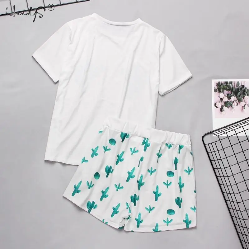 Весенне-летний женский пижамный комплект, мультяшная Повседневная Женская одежда, Пижамный костюм, женская футболка с коротким рукавом, топы, одежда для сна