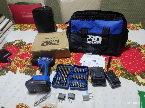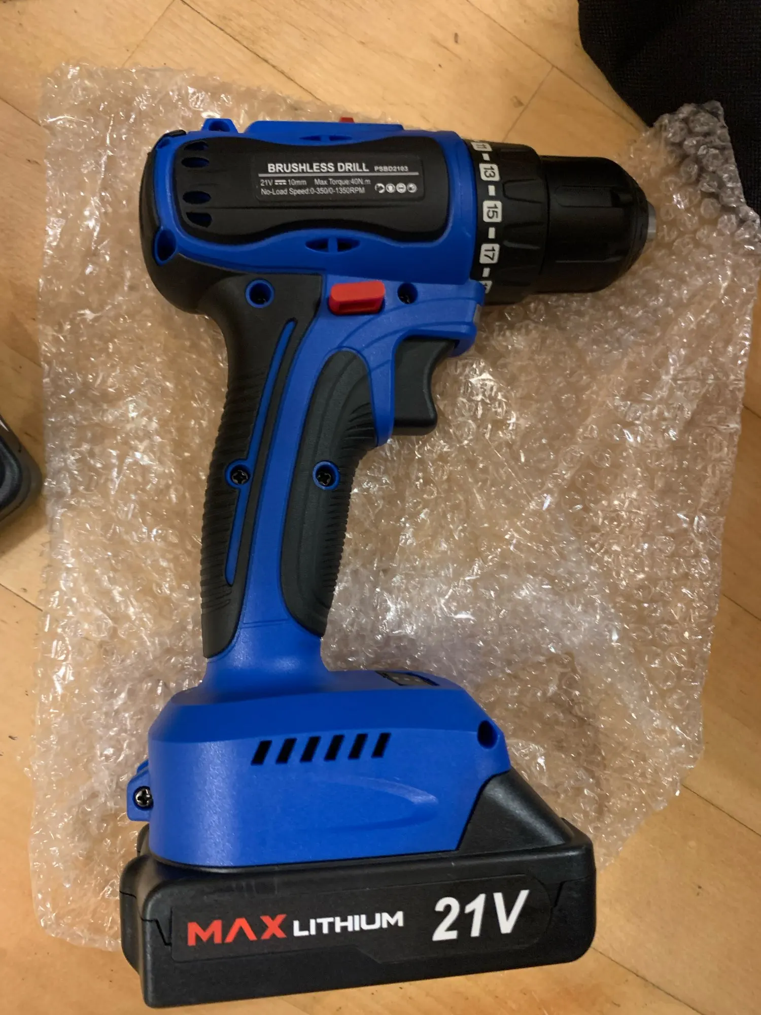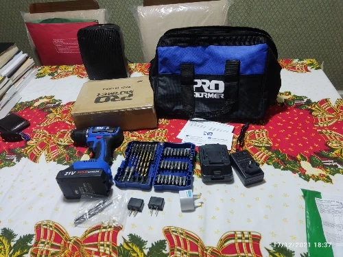 Принесли домой на третий день после покупки. Думал что шуруповёрт будет больше, он оказался маленький, компактный. Очень удивился размерам. Работает, но шумный по сравнению с Bosch (у меня только есть Bosch на момент сравнения) Аккумы по весу лёгкие, собственно как и сам шуруповёрт. Блок питания тоже очень легкий, у меня (ИМХО) он не внушает довериярия, принцип заряда аккумов как и в гироскутере, индикация заряда на блоке питания. Пластик везде посредственный. Первое ощущение "ну так себе, норм, пойдёт для дома", возможно я ошибаюсь, всё опять же сравнивал с Bosch. За эти деньги прекрасный выбор, учитывая безщеточную систему. Твёрдая пятёрка моими глазами.