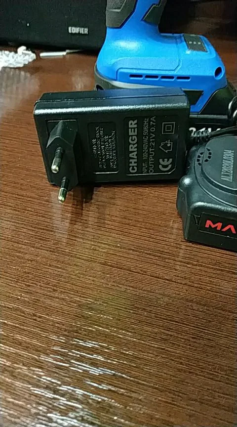 Сам шуруповёрт хорош, сделан качественно, пластик жестковат, но не особо пахнет. Есть 3х уровневая индикация аккума и подсветка. Немного шумно работает. В руке лежит удобно, по весу не пушинка, но и не тянет, короч оптимально. Момент действительно отличный. Патрон маленький - держит сверло 1 мм, но не глубокий, двустороннюю биту держит за самый край. Ёмкость аккума не указана, но не думаю что большая. Внутри 5 банок по 3,7 В, тч по идее должно быть суммарно 18,5 В, до 21 догоняет видимо dc-dc преобразователь. Крепление такое же как у макиты - можно поставить макитовский, но заряд штатного только от шнурка. Зарядка хилая, заряжает оч долго, из индикации заряда только 2х цветный (крас/зел) диод. Комплектые сверла - тоже хилые, те что с хвостовиками ещё и кривые жуть. К сумке вопросов нет, сшита нормально, вместительная. Короче за свои деньги приемлемо. Для нечастой работы вполне подходит.