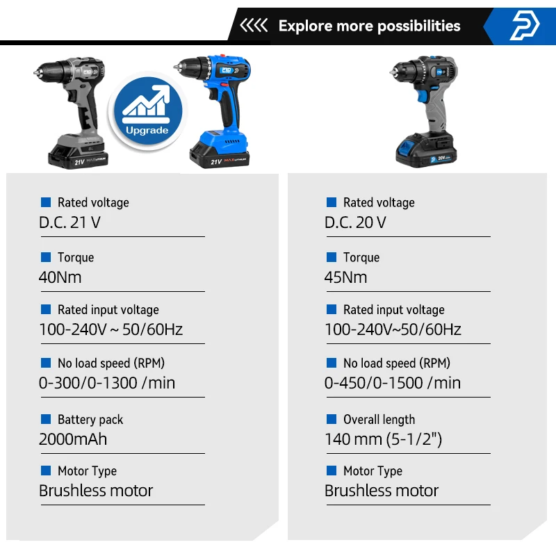 Опробовал шуруповерт 21в новой версии, всё работает нормально, но есть моменты. У меня есть такой же шуруповерт 21в но старой версии и есть с чем сравнить, в старой версии патрон помощнее и больше, работает шурик плавнее, тише, люфтов в патроне почти нет, в новой версии шурик больше шумит, бывает при переключении режима скорости в редукторе при старте какой-то хруст, патрон немного бьёт и люфтит. Как по мне старая версия более удачная, мощнее, по ощущениям надёжнее. Аккумуляторы взаимозаменяемы. На фото справа старая версия, слева новая.