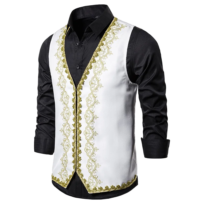 Стильный жилет в стиле барокко с золотой вышивкой, мужской облегающ...