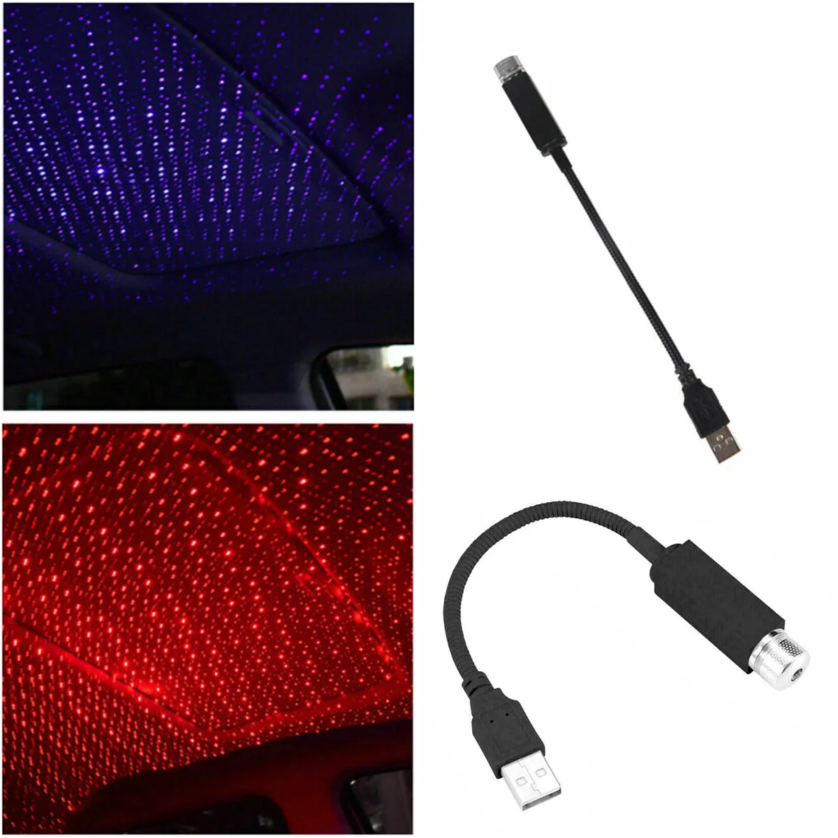 Романтичный светодиодный потолочный светильник для дома и автомобиля, Регулируемый USB разъем для подключения и воспроизведения, ночник, звездное небо, красный, синий, декоративный светильник, несколько эффектов