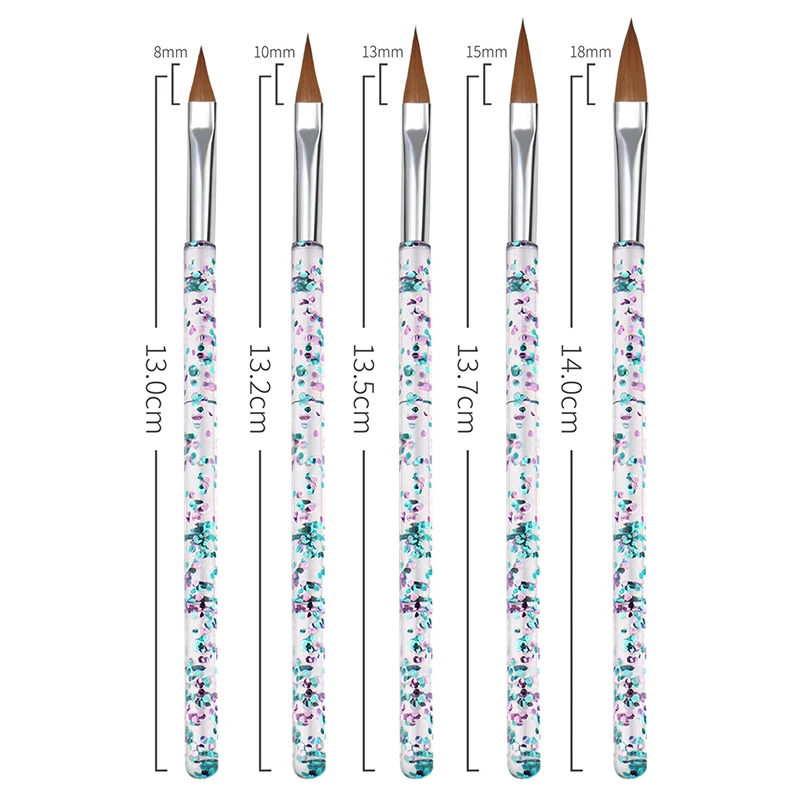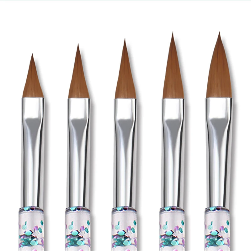 5 шт./компл. блестящая Ручка Акриловая кисть для ногтей 3D Хрустальные кисти для резки акриловая жидкая пудра Цветочная ручка для рисования Инструменты для дизайна ногтей