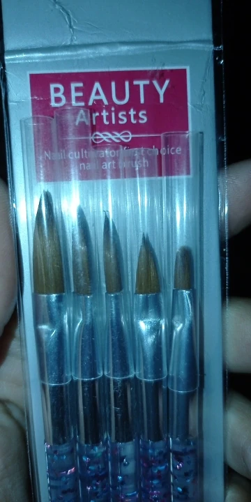 Кисть для ногтей, акриловая, с блестками, 5 шт.компл.