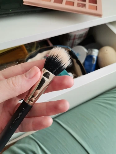 И все-таки недолюбливаю я дуофибры. Ну или просто я пока не нашла свою идеальную. Я не брала ее как копию Мак (на ручке выбит бренд и номер), мне просто нужна была такая кисть. Она оказалась чуть меньше, чем я ожидала, но минус не в этом. Белые ворсинки все же должны быть чуть короче, чтобы продукт больше впитывался в ворс козы. В остальном все ок: мягкая, но упругая, сделана качественно.