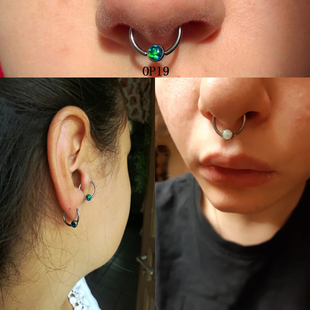 1 шт. G23 титановый опал Ушная перегородка пирсинг носовое кольцо драгоценный камень мяч BCR Пирсинг CBR Helix Tragus Labret кольца ювелирные изделия для пирсинга тела