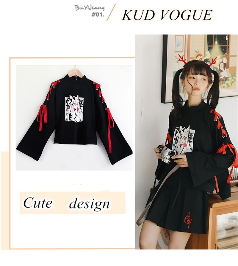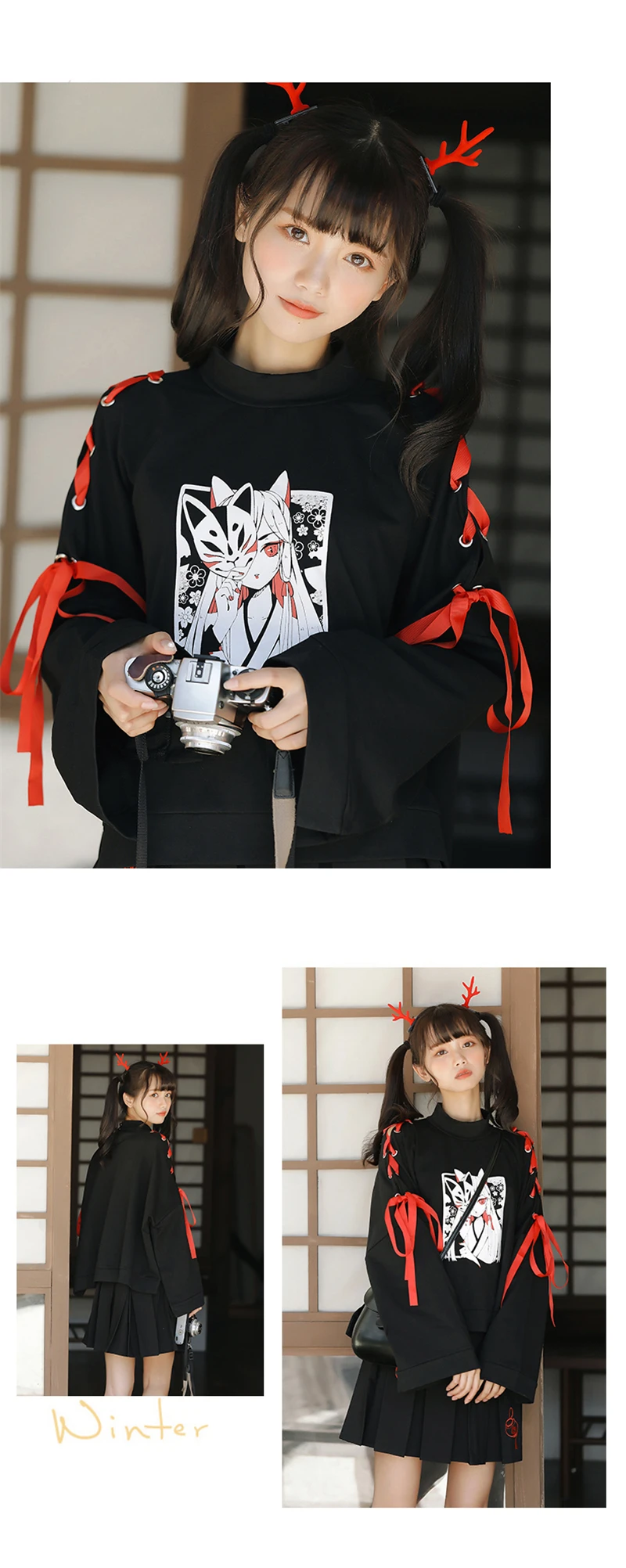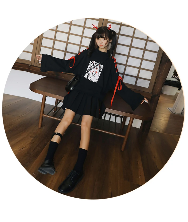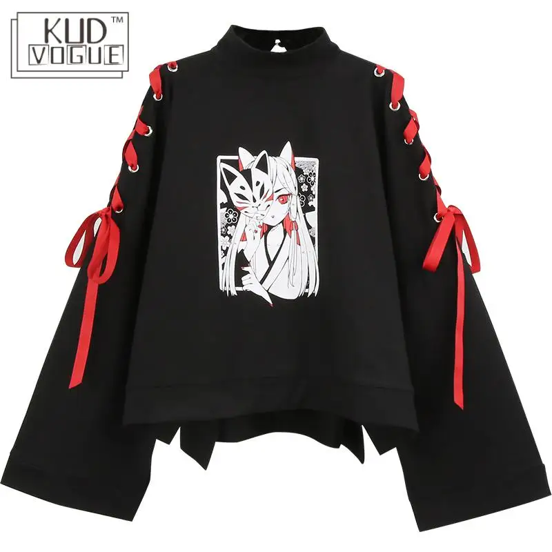 Толстовка Женская, черная, с принтом аниме, в японском стиле
