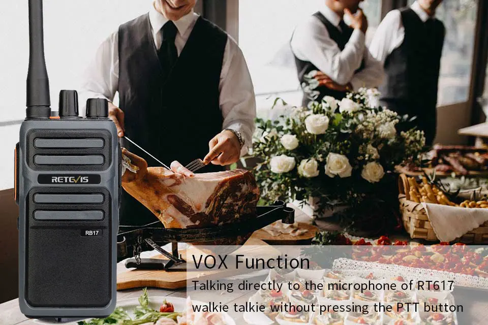 Функция VOX также называется Hands Free, обращаясь непосредственно к микрофону RB17/RB617 walkie talkie без нажатия кнопки PTT.