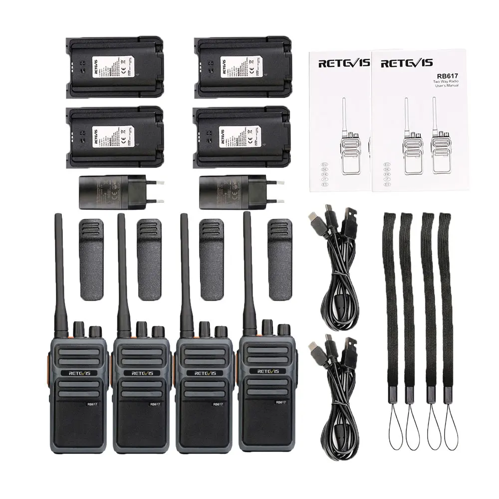 Рация Retevis RB617 RB17 PMR, 4 шт., батарея 4400 мАч, Type C, USB зарядка