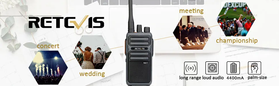 Retevis RB17/RB617 рация подходит для различных случаев и различных людей, может быть широко использована в большом торговом центре, ресторан, отель, кофейня, KTV, Бар, склад, управление собственностью, путешествия, охота и так далее.