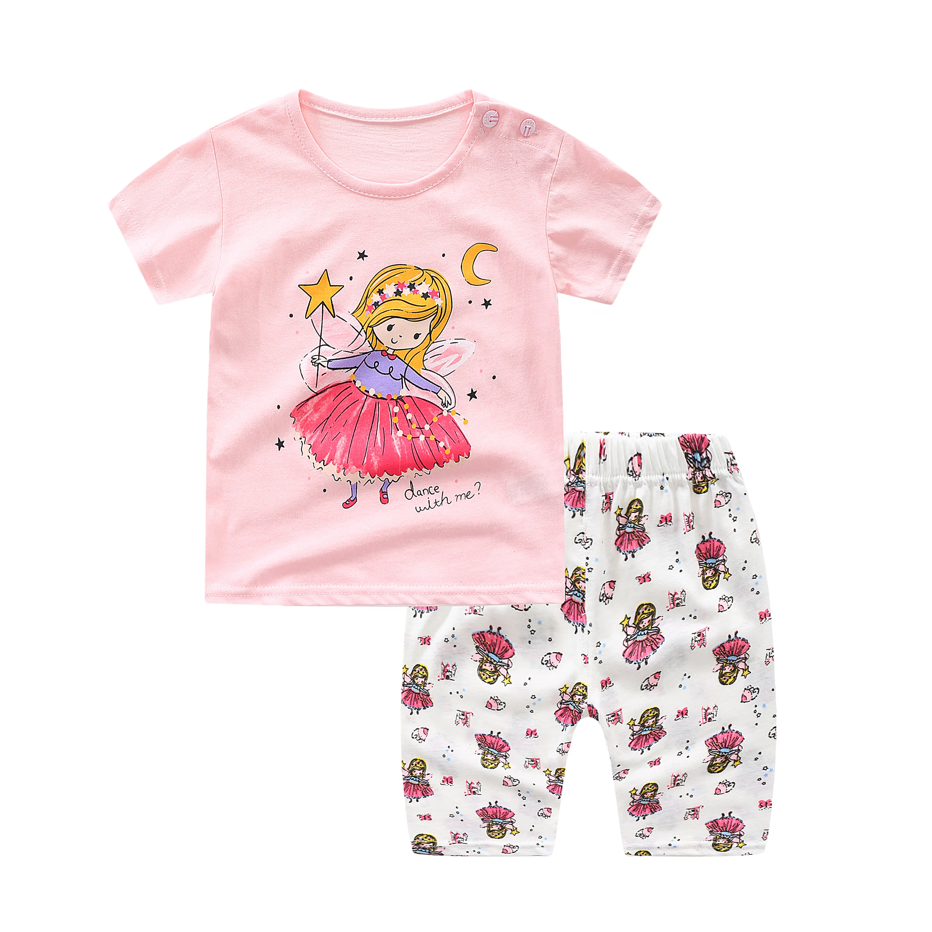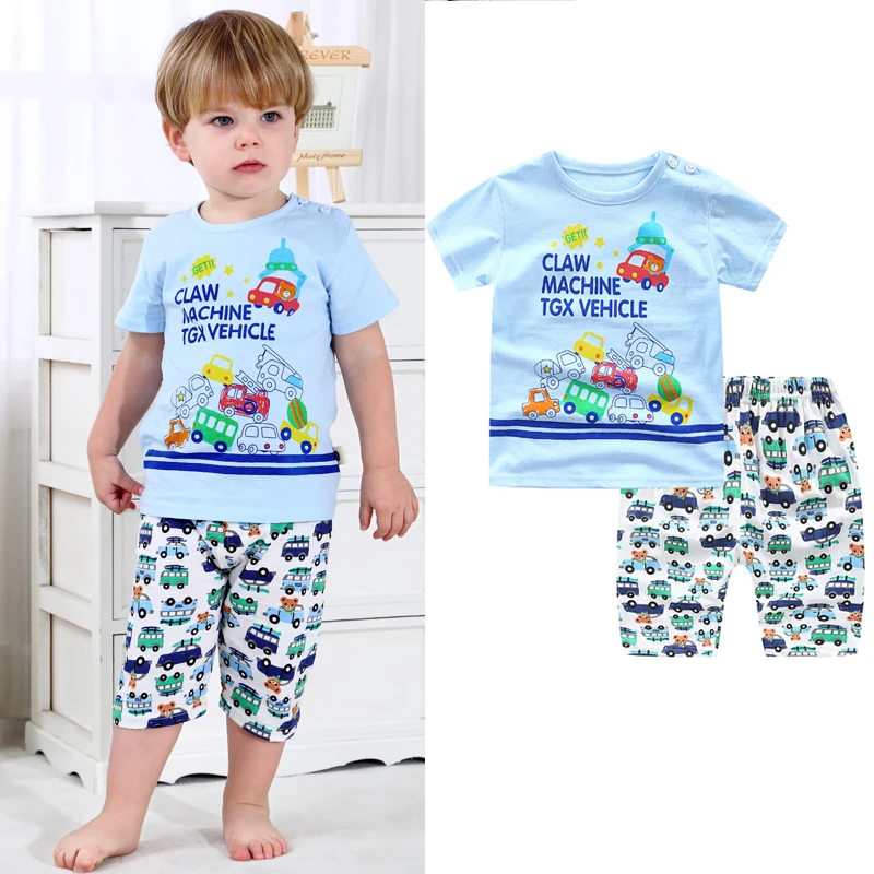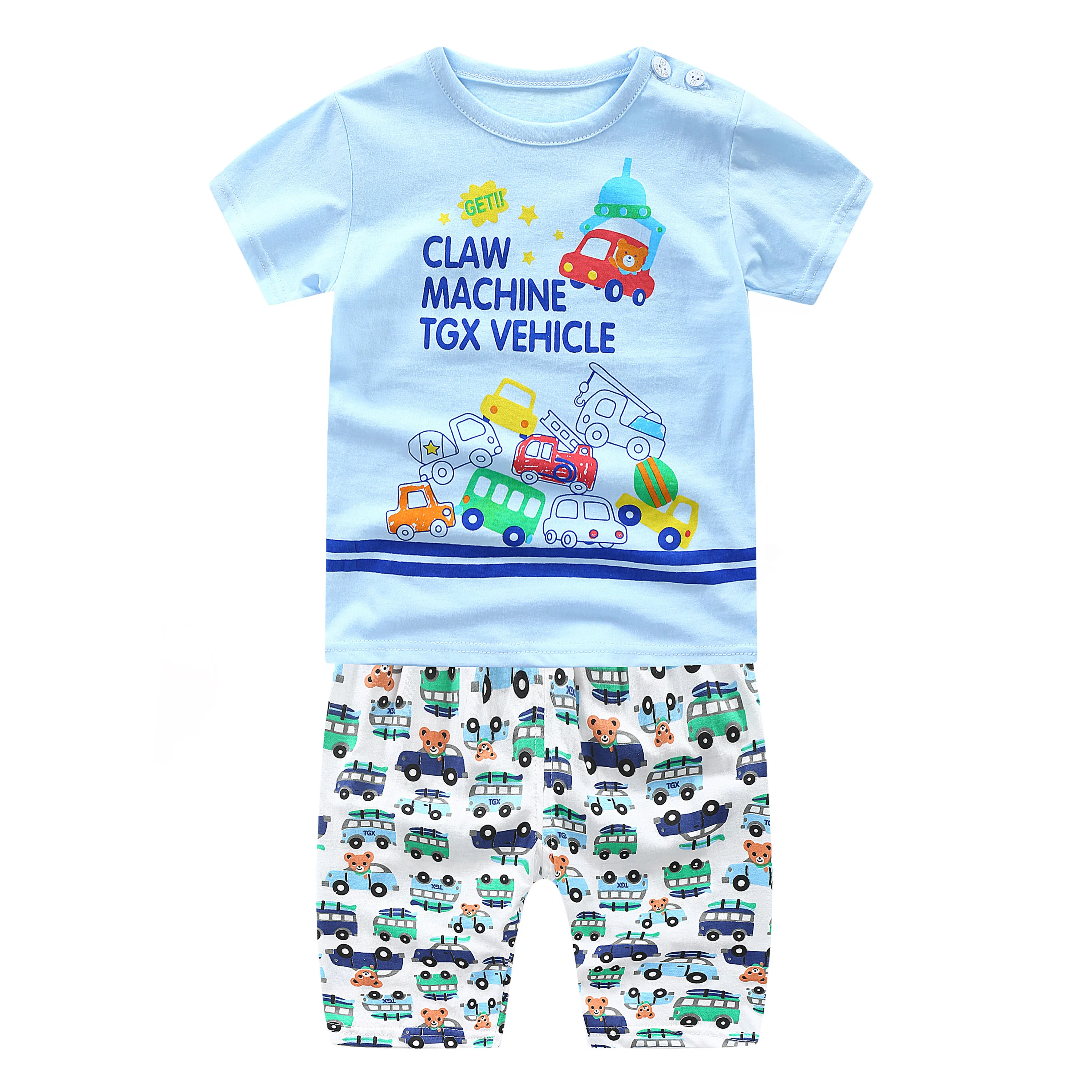 От 6 месяцев до 4 лет комплекты детской одежды с рисунком хлопковый комплект одежды с короткими рукавами, новая летняя детская футболка комплекты из двух предметов Одежда для маленьких мальчиков и девочек