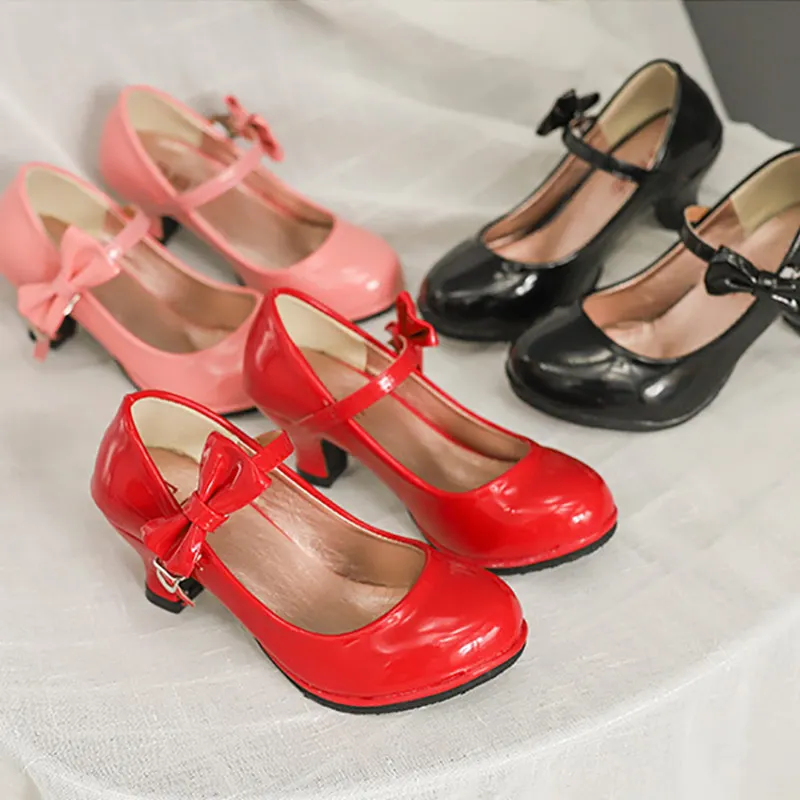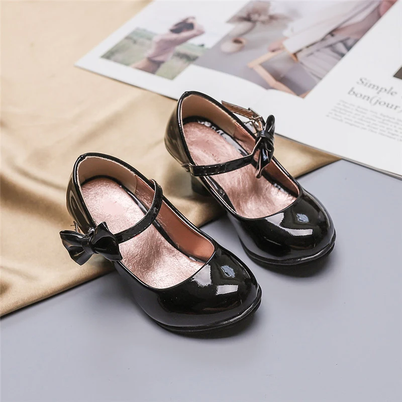 Кожаные туфли для девочек, Осенние босоножки с бантиком, новинка 2019, детская обувь, милые босоножки принцессы на высоком каблуке для девочек