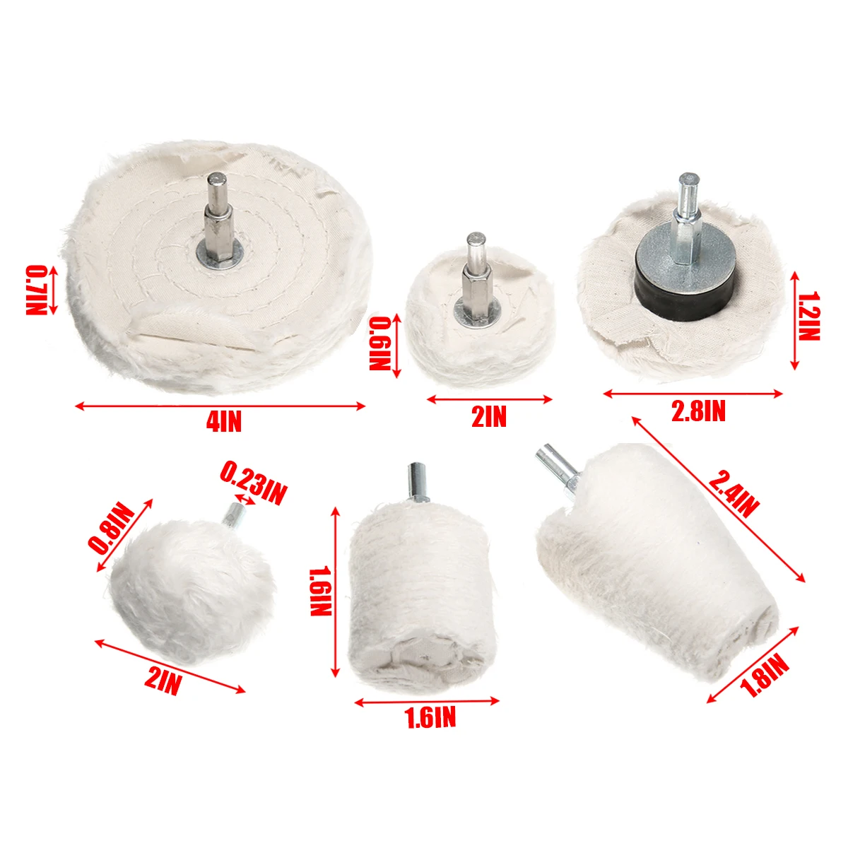 [Полировочное колесо]: специально разработано для полировки утопленных ареадов, таких как маг колеса, мотоциклетные колеса коллекторы. Различные формы и диаметры позволяют достичь 99% ножей, отлично подходит для колес, крыльев, бамперов и других труднодоступных пятен.