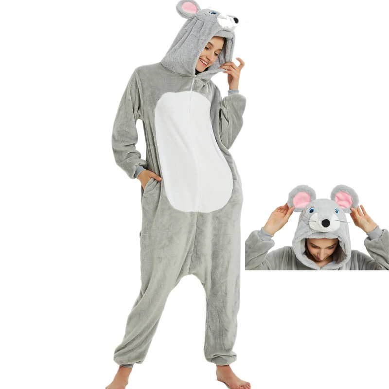 Женский Пижамный костюм Kigurumis Mouse, цельная фланелевая мягкая Пижама для взрослых, домашняя одежда, праздничный костюм для вечеринки