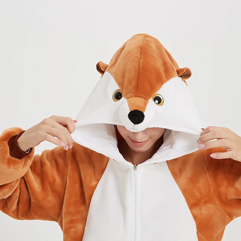 Женский Пижамный костюм Kigurumis Fox, цельная фланелевая мягкая Пижама для взрослых, домашняя одежда, праздничный костюм для вечеринки