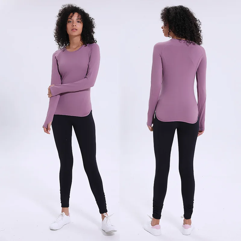 SALSPOR однотонные спортивные рубашки для фитнеса, блузка, женский топ для йоги с длинным рукавом, Быстросохнущий бесшовный топ с защитой от пота для фитнеса